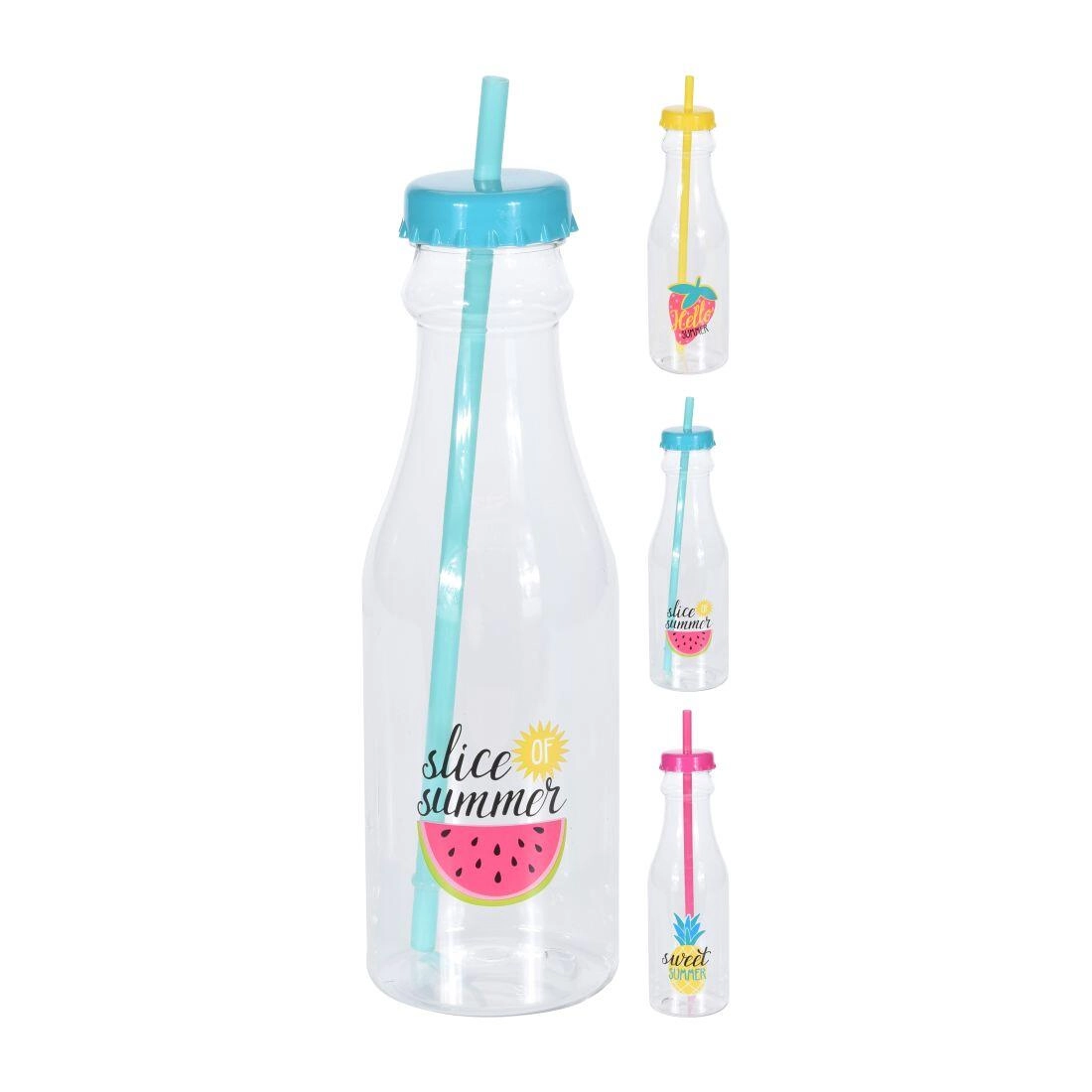 Genießen Sie bequemes Trinken ohne Kleckern. Diese tragbare Flasche mit integriertem Strohhalm bietet maximalen Komfort im täglichen Gebrauch. Dank der kompakten Abmessungen passt sie in den Auto-Getränkehalter und in den Rucksack, während das moderne Design mit Streifen und sommerlichen Motiven (Grapefruit, Aloha, Summer Living) Ihrem Tag einen frischen Stil verleiht.