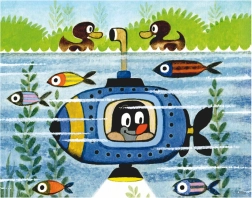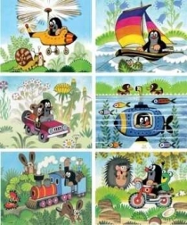 • Mehrere Verkehrsmittel-Motive – der kleine Maulwurf im Auto, auf dem Motorrad, im Hubschrauber und im U‑Boot