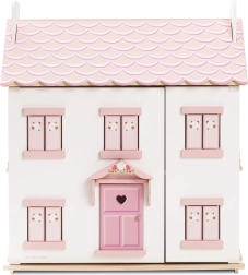 Das luxuriöse dreistöckige Haus in romantischem Rosa-Weiß besticht durch ein funkelndes, geriffeltes Dach, Herzchen und farbenfrohe Innendekorationen in jedem Raum. Öffnende Fenster und Fensterläden laden Kinder in eine Welt voller Geschichten ein, während die stabile Holzkonstruktion eine lange Lebensdauer garantiert. Das Haus wird ohne Ausstattung geliefert, sodass Kinder es mit Möbeln und Figuren nach ihrem eigenen Stil gestalten können.