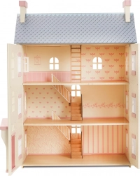 Das Puppenhaus Cherry Tree Hall der Marke LE TOY VAN ist ein zeitloses Highlight fürs Kinderzimmer. Vier Etagen mit individuell dekorierten Wänden, Holztreppen und einem über eine Leiter erreichbaren Dachboden laden zu endlosen Geschichten ein. Die aufklappbare Fassade und beweglichen Fensterläden verleihen dem Spiel Realitätsnähe, während rosafarbene Türen und Pastellakzente eine gemütliche Atmosphäre schaffen.
