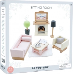 Nach einem Tag voller Spiel entspannen die Figuren in diesem schönen Wohnzimmer, das Kinder zum Spielen anregt und ihre Vorstellungskraft entwickelt. Die Wohnzimmerausstattung ist mit ungiftigen Farben dekoriert und aus FSC®-Holz gefertigt, das Generationen von Kindern Freude bereitet.