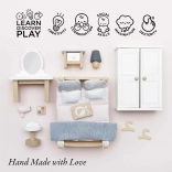 Das Schlafzimmer-Set ist im klassischen Stil mit angenehmen neutralen Tönen gestaltet, die harmonisch jedes Kinderpuppenhaus ergänzen.