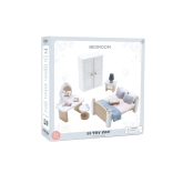 Le Toy Van präsentiert ein Schlafzimmer-Set, das Eleganz und Komfort in jedes Puppenhaus bringt. Die verspielte, träumerische Welt der kindlichen Fantasie wird mit diesem Set zur Realität.