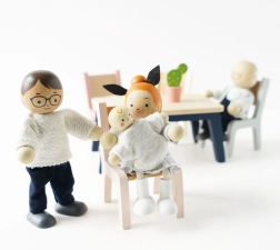 <Das Holzpuppen-Set Meine Familie ist ideal fcr alle Puppenh4user und Produkte der Marke Le Toy Van. Jede Figur ist in handgen8hte Kleidung geh41lt und hat bewegliche Gliedma33en. Dieses Spielzeug ist nicht nur sch47n, sondern auch lehrreich und hilft Kindern, Kommunikations-, Sozial- und Kreativitatfdigkeiten zu entwickeln.<