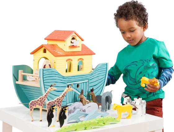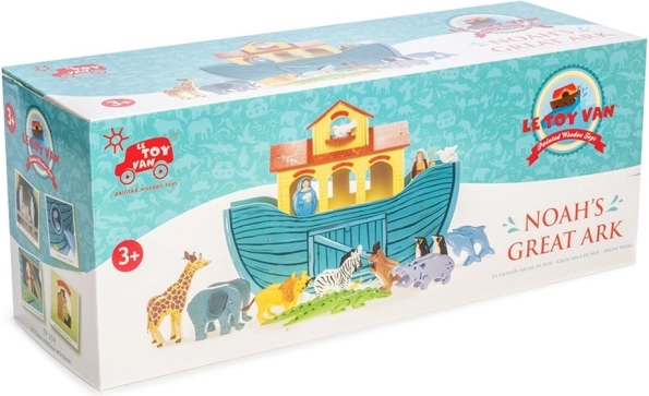 Die bezaubernde Noahs Arche von Le Toy Van bietet eine einzigartige Möglichkeit für Kinder, die Geschichte von der Arche Noah kennenzulernen und gleichzeitig kreatives Spiel zu genießen. Diese große Arche umfasst zehn Paare handbemalter Tiere und menschliche Figuren, die ebenfalls mit umweltfreundlichen Farben handbemalt sind. Die Arche ist mit einer ausziehbaren Frontplatte und seitlichen Klapptüren ausgestattet, die den Zugang zu den Figuren erleichtern.
