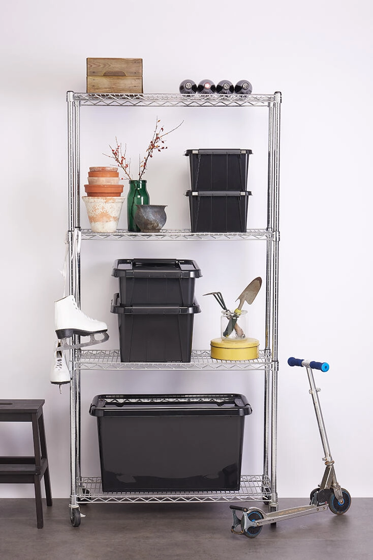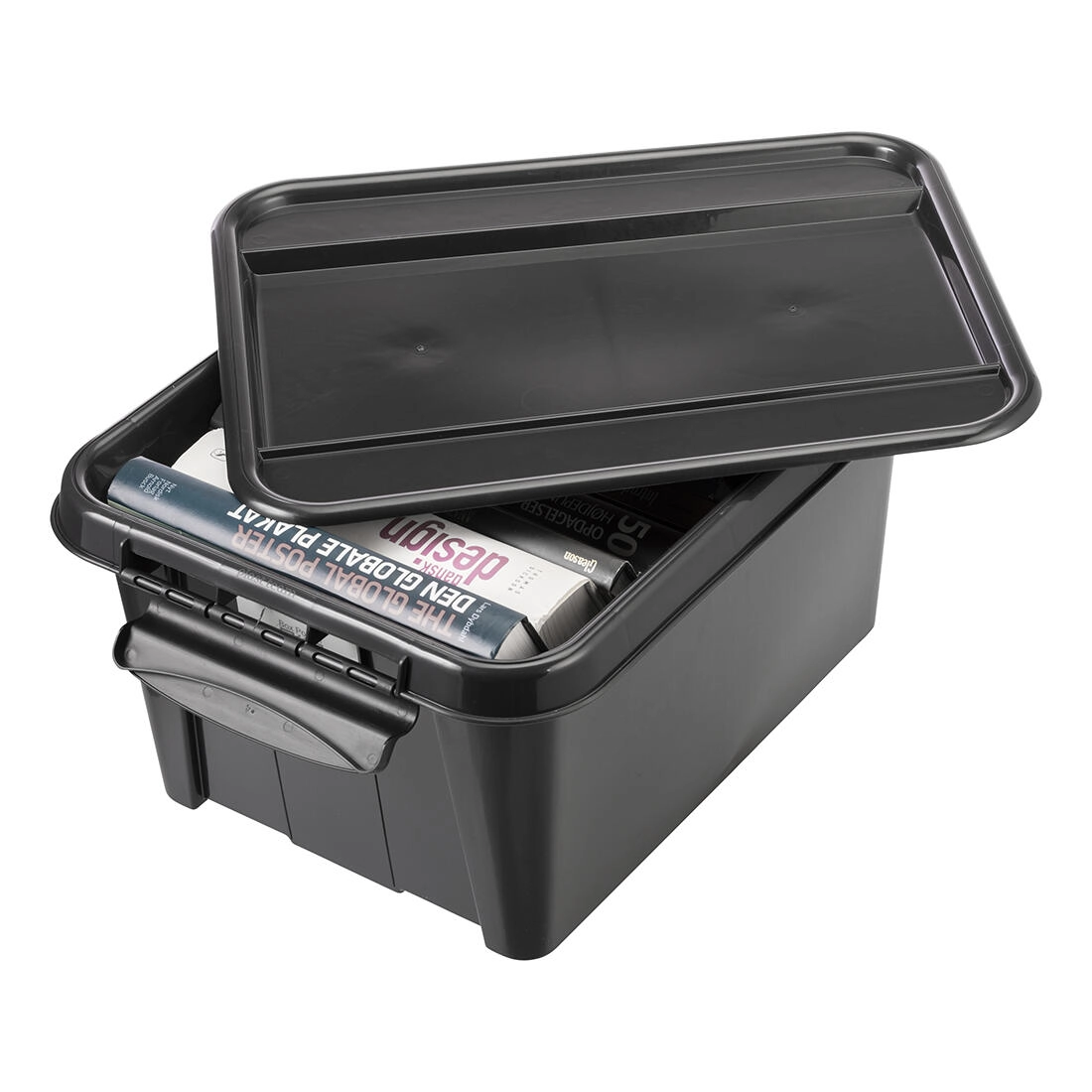 Behalten Sie Ordnung mit der robusten Aufbewahrungsbox aus recyceltem Polypropylen. Mit einem Volumen von 32 Litern und den Maßen 51 × 39 × 25,8 cm eignet sie sich für kleine bis mittelgroße Gegenstände. Der stabile Deckel und 2 robuste Clips sorgen für ein sicheres Verschließen und schützen den Inhalt vor Staub.