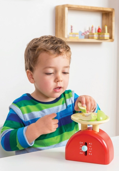 Die stilvolle Holz-Küchenwaage aus der Honeybake-Kollektion von LE TOY VAN ist das perfekte Zubehör für die Kinderküche oder den Kaufmannsladen. Sie bietet realistisches Wiegen dank eines cleveren beweglichen Hebels, ist von Hand nachbemalt mit ungiftigen Farben auf Wasserbasis und enthält außerdem zwei halbierte Äpfel mit Klettverschluss für unendliche Spielszenarien.