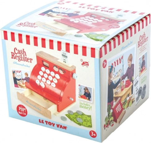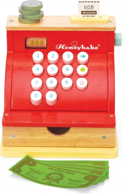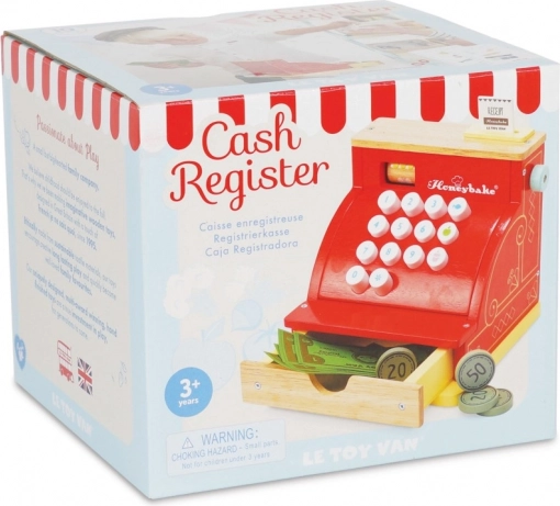 Die rote Holzkasse von LE TOY VAN aus der preisgekrönten Honeybake-Kollektion vereint hochwertige Verarbeitung, sichere Materialien und einen bezaubernden Vintage-Look mit goldenen Details. Ideal für Kaufladen-Spiele sowie zur Förderung sozialer Fähigkeiten, Kreativität und grundlegender mathematischer Kompetenzen.