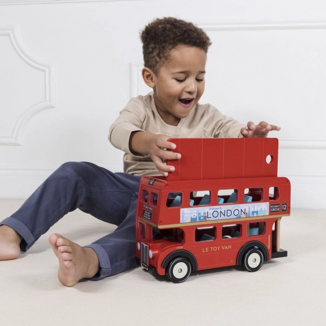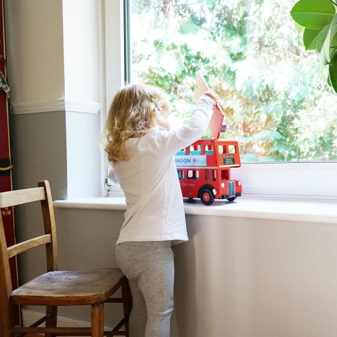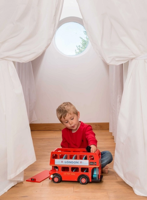 Entdecken Sie die Schönheiten Londons mit dem Doppeldecker Holzbus Le Toy Van. Dieses ikonische Spielzeug, entworfen mit Details wie realistischen Beschilderungen und einem abnehmbaren Dach, bietet eine großartige Möglichkeit, die kindliche Vorstellungskraft und Feinmotorik zu fördern.