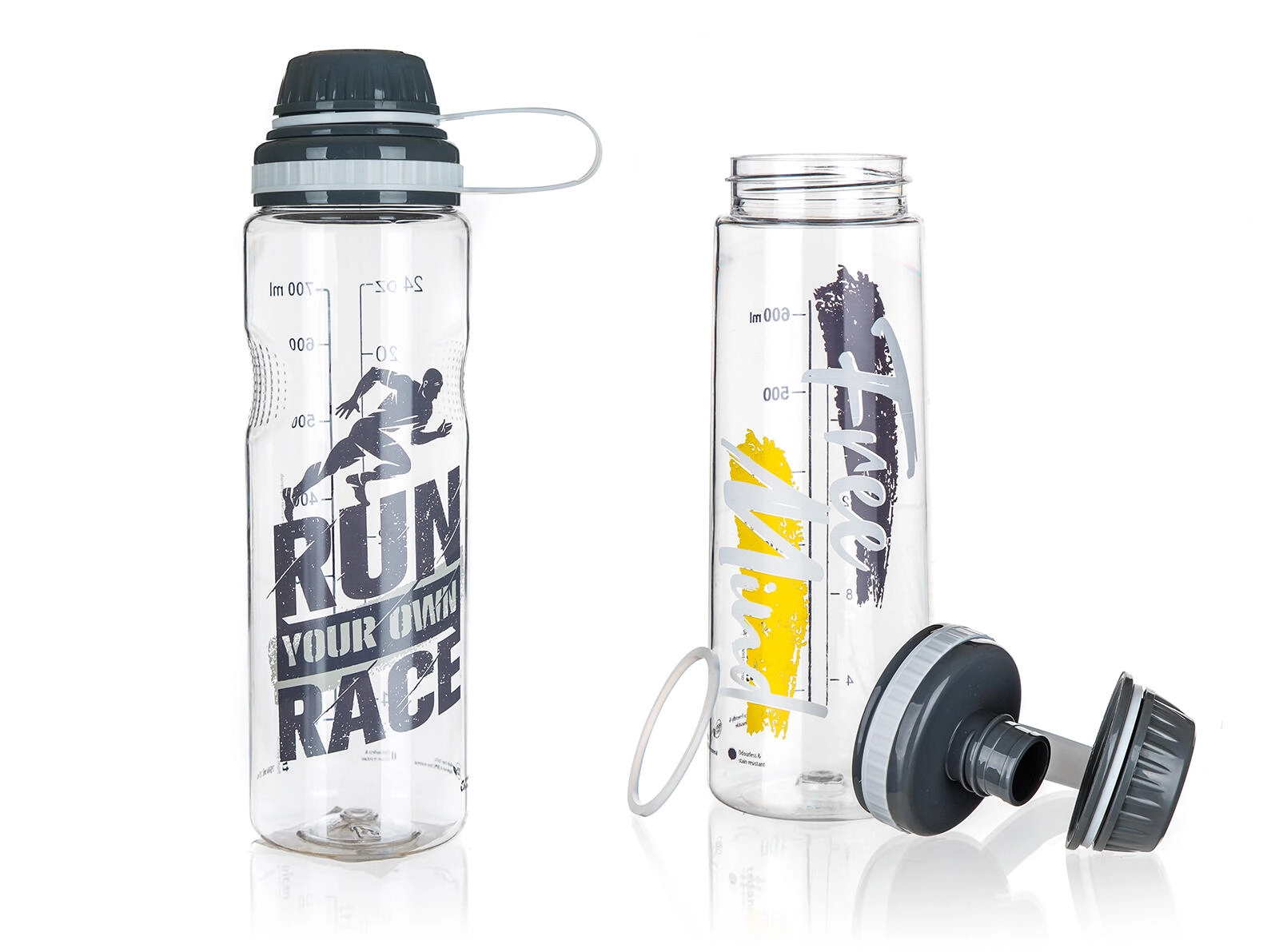 Genießen Sie bequemes Auffüllen mit einer leichten und dennoch außergewöhnlich robusten Flasche aus TRITAN. Mit einem Volumen von 750 ml ist sie ideal für Training, Wanderungen und den täglichen Gebrauch. Der transparente Körper mit Skala hilft Ihnen, Ihre Trinkmenge im Blick zu behalten, während der wasserdichte Deckel den Inhalt zuverlässig im Inneren hält.