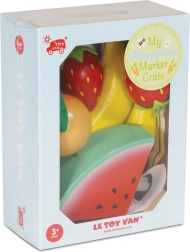 Die Holzkiste mit Früchten von Le Toy Van ist ein perfektes Mittel zur Förderung der kindlichen Fantasie. Sie enthält verschiedene Obstsorten wie Banane, Erdbeere und Orange. Alle Teile sind aus robustem und nachhaltigem Holz gefertigt, mit ungiftigen Farben bemalt und in idealer Größe für kleine Kinderhände.