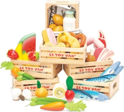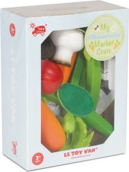 Enthalten sind 9 detailreich gestaltete Gemüsestücke und eine Holzkiste mit Markenlogo. Das Spielzeug ist Teil der preisgekrönten Honeybake-Kollektion, die kognitive Fähigkeiten, soziale Interaktion und Sprachentwicklung durch imitatives Spiel fördert.