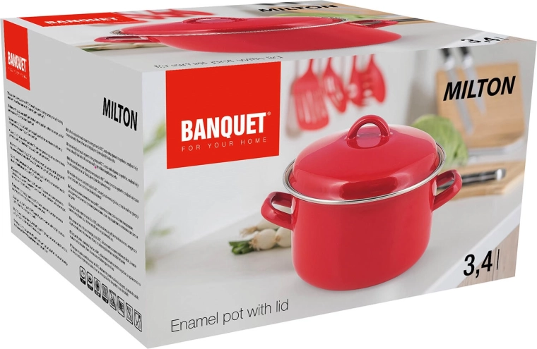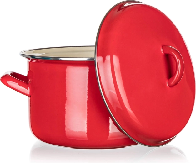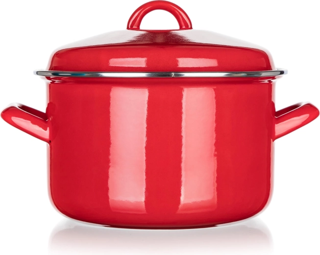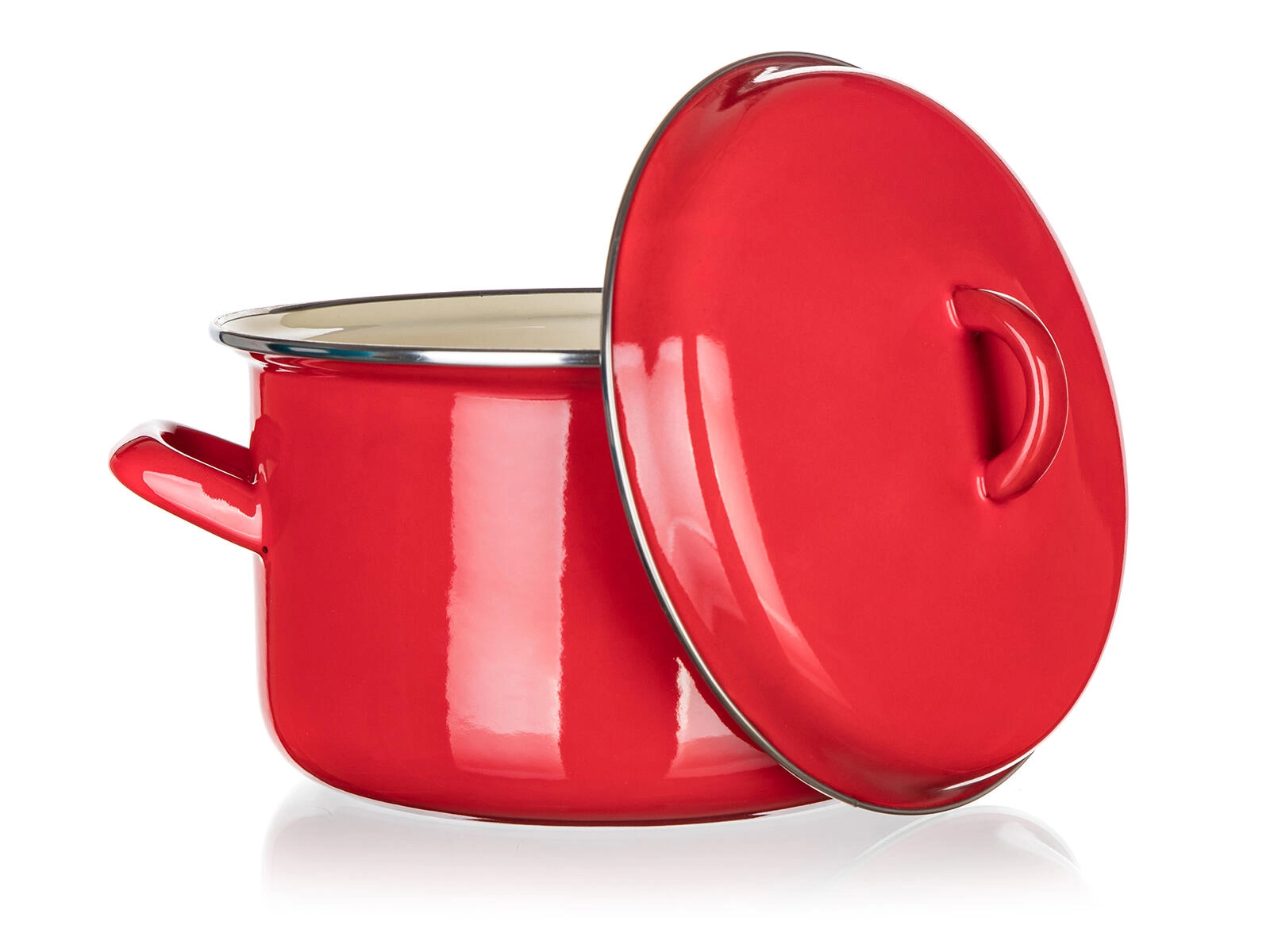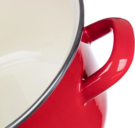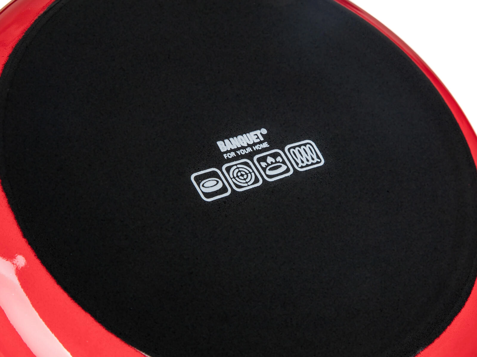 Hochwertige Emaille mit einer Wandstärke von 0,7 mm gewährleistet gleichmäßiges Erhitzen, hohe Kratzfestigkeit und einfache Pflege.