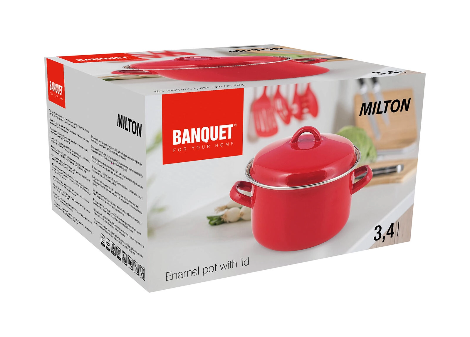 Ein beliebter Küchenhelfer zum Kochen von Suppen, Saucen und Beilagen. Der MILTON-Topf aus hochwertiger Emaille verfügt über stabile seitliche Griffe und einen gut schließenden Deckel für eine effiziente Wärme- und Feuchtigkeitsspeicherung. Die cremefarbene, nicht-reaktive Innenfläche ist leicht zu reinigen.