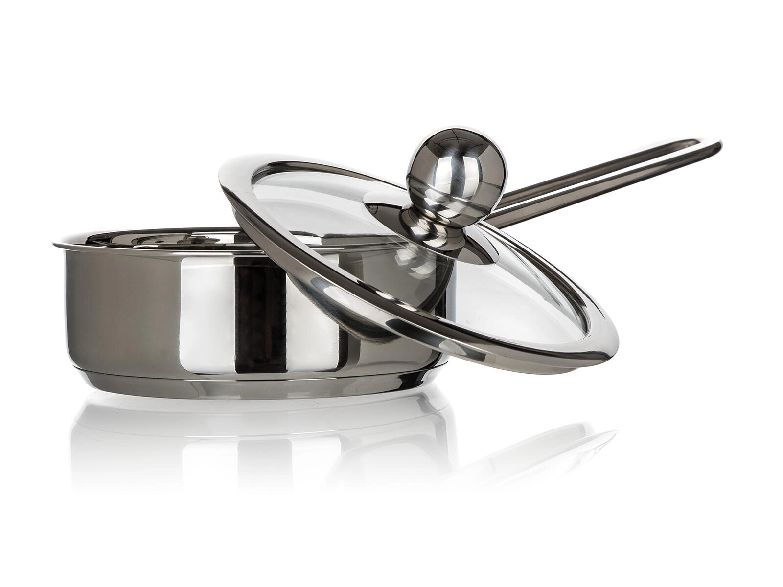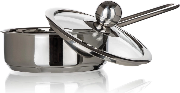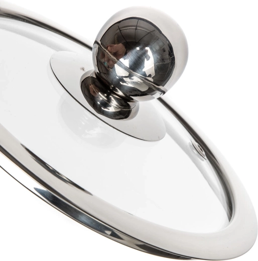 Der transparente Deckel aus gehärtetem Glas mit Metallknauf hält Wärme und Dampf im Inneren, während Sie den Kochvorgang im Blick behalten – ganz ohne Anheben des Deckels.