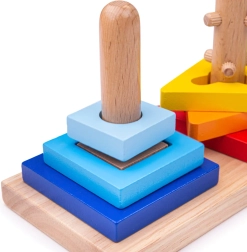 Das Steckspiel ist aus hochwertigem, verantwortungsvoll gewonnenem Holz gefertigt und mit unbedenklichen Farben versehen. Die Teile lassen sich vom Größten zum Kleinsten ordnen, nach Farben und Formen sortieren oder zu eigenen Spielen kombinieren. Dank der kompakten Maße ideal fürs Kinderzimmer und unterwegs.