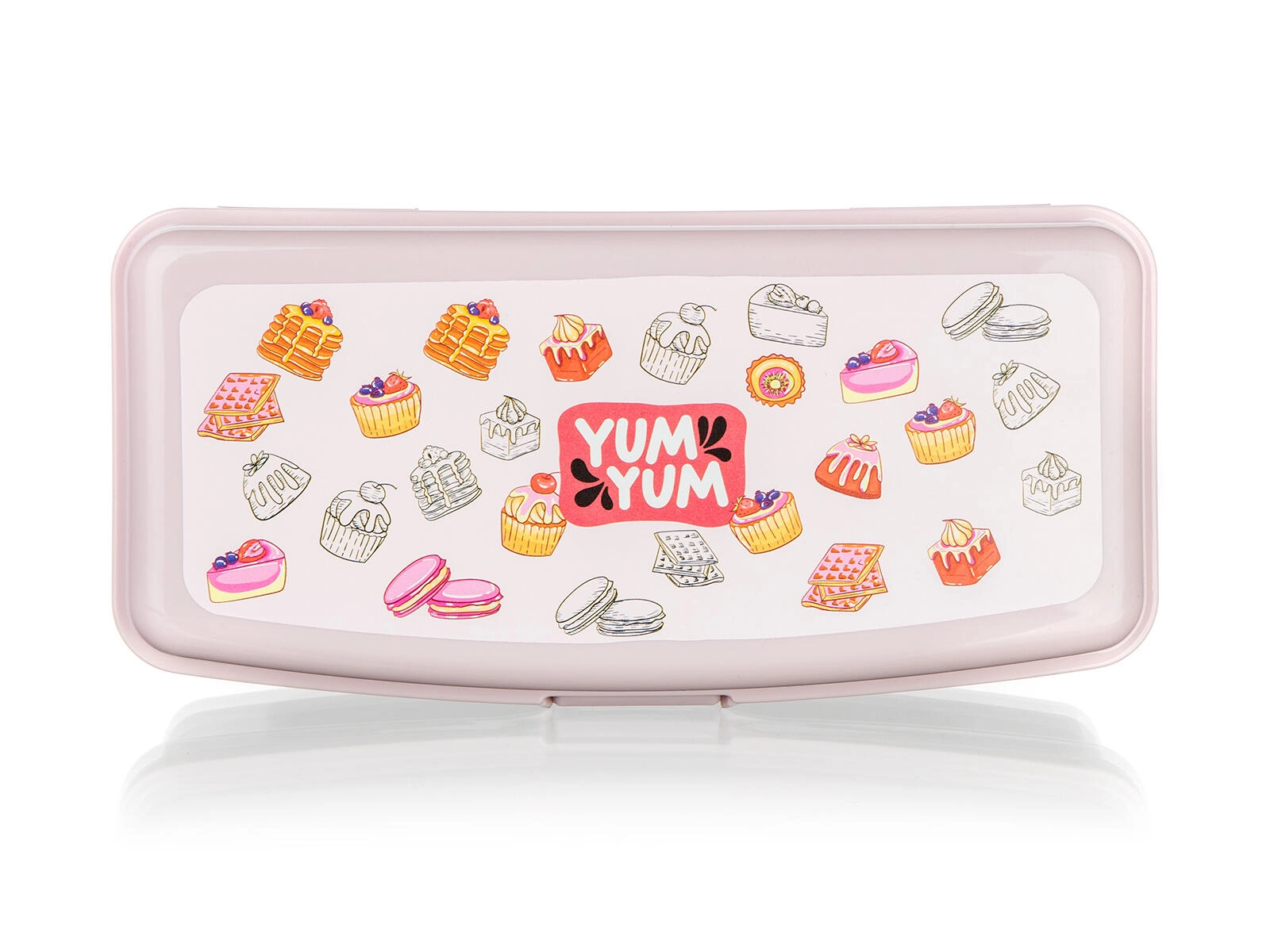 Die stylische Snackbox mit niedlichem YUM-Motiv ist eine tolle Wahl für Kinder und Erwachsene. Dank der kompakten Maße von 20 × 9,5 × 5,5 cm passt sie in Schultasche oder Rucksack und bietet ausreichend Platz für Gebäck, Obst und kleine Leckereien. Der stabile Klippverschluss sorgt dafür, dass der Inhalt den ganzen Tag an seinem Platz bleibt.
