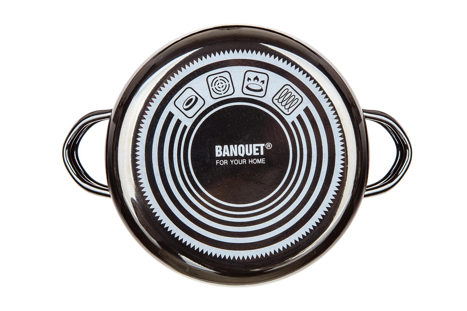 Die emaillierte Oberfläche in Metallic Black ist widerstandsfähig, leicht zu reinigen und verleiht der Küche einen modernen Stil.