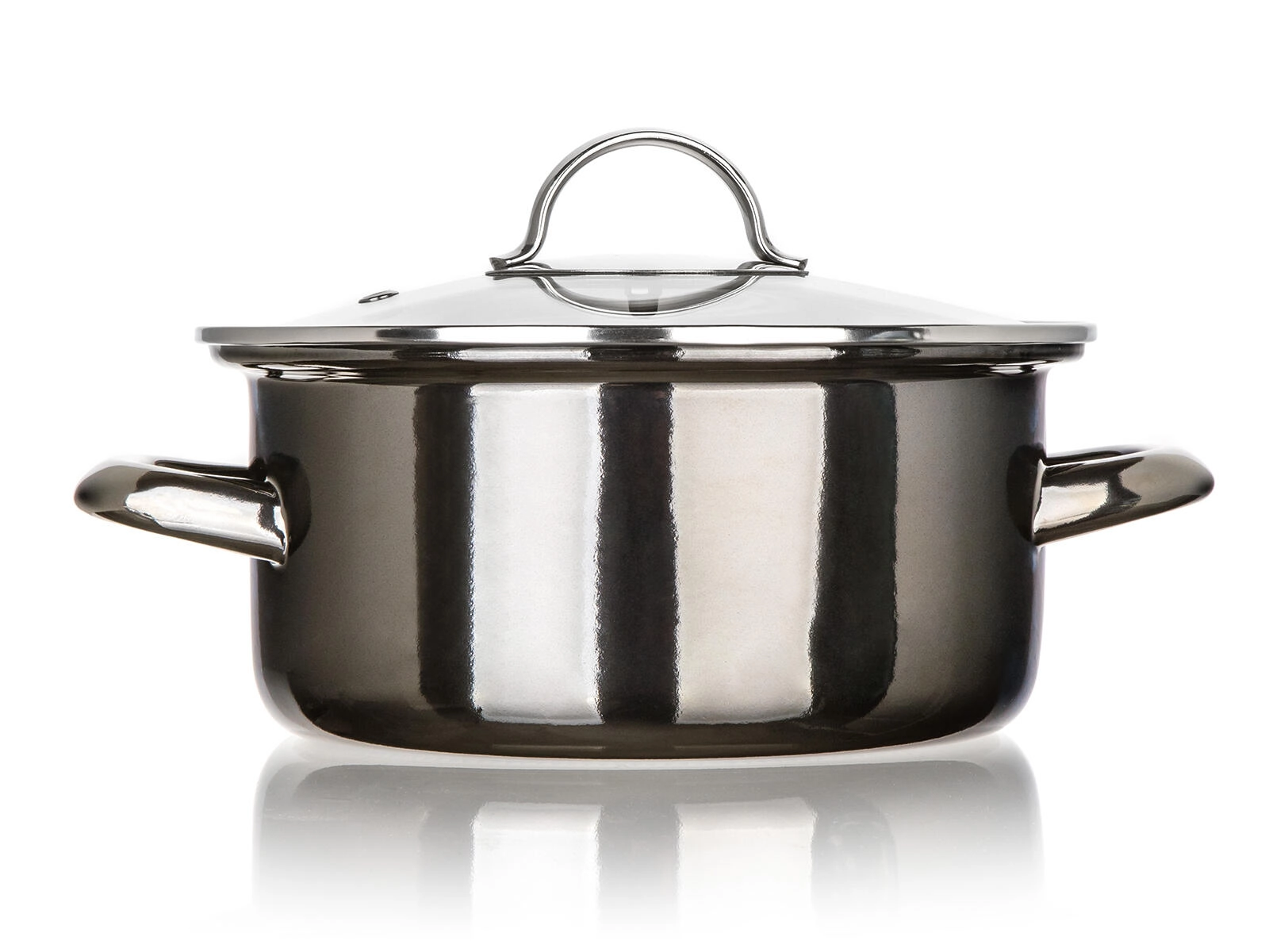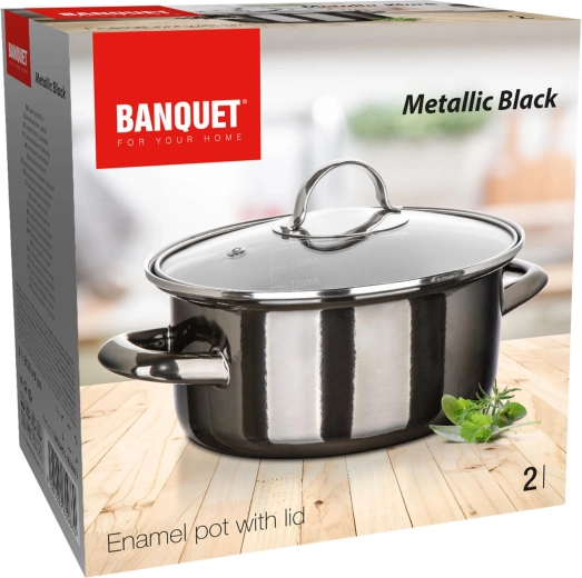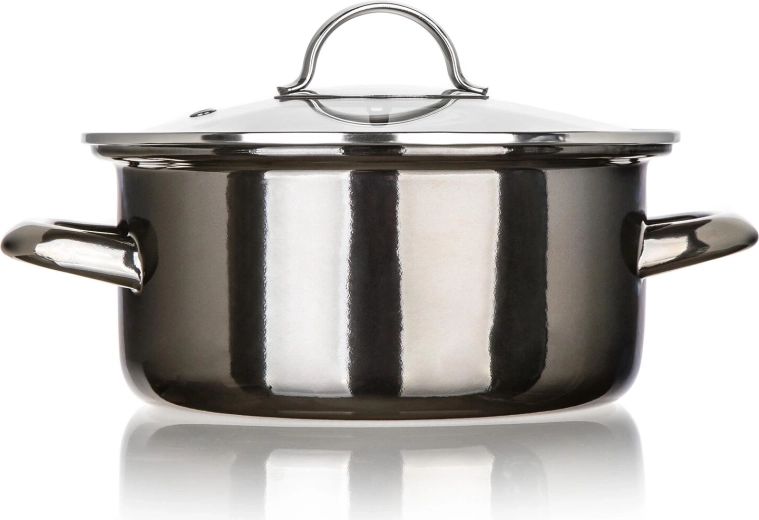 Entdecken Sie einen praktischen und stilvollen Topf in schwarzer Metallic-Optik, der sich als zuverlässiger Helfer für Suppen, Saucen oder Beilagen erweist. Die emaillierte Oberfläche ist langlebig, leicht zu reinigen und verleiht dem Kochgeschirr einen zeitlosen Charakter. Der Glasdeckel ermöglicht die Kontrolle des Kochens ohne ständiges Anheben – das spart Energie und Zeit.