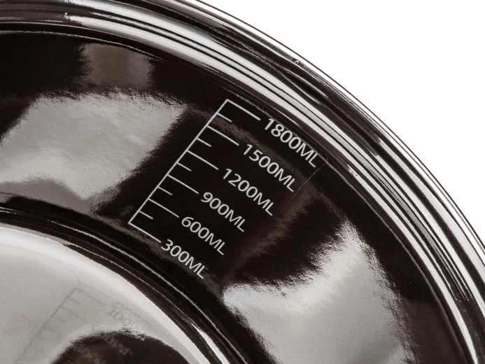 Die elegante schwarze Metallic-Optik verleiht der Küche einen modernen Look, während die emaillierte Oberfläche eine einfache Pflege und hohe Widerstandsfähigkeit im täglichen Gebrauch sicherstellt.