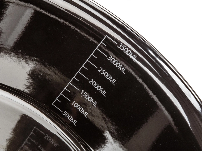 Ideale Größe für das Familienkochen. Die Emaille-Oberfläche ist verschleißfest und leicht zu reinigen.