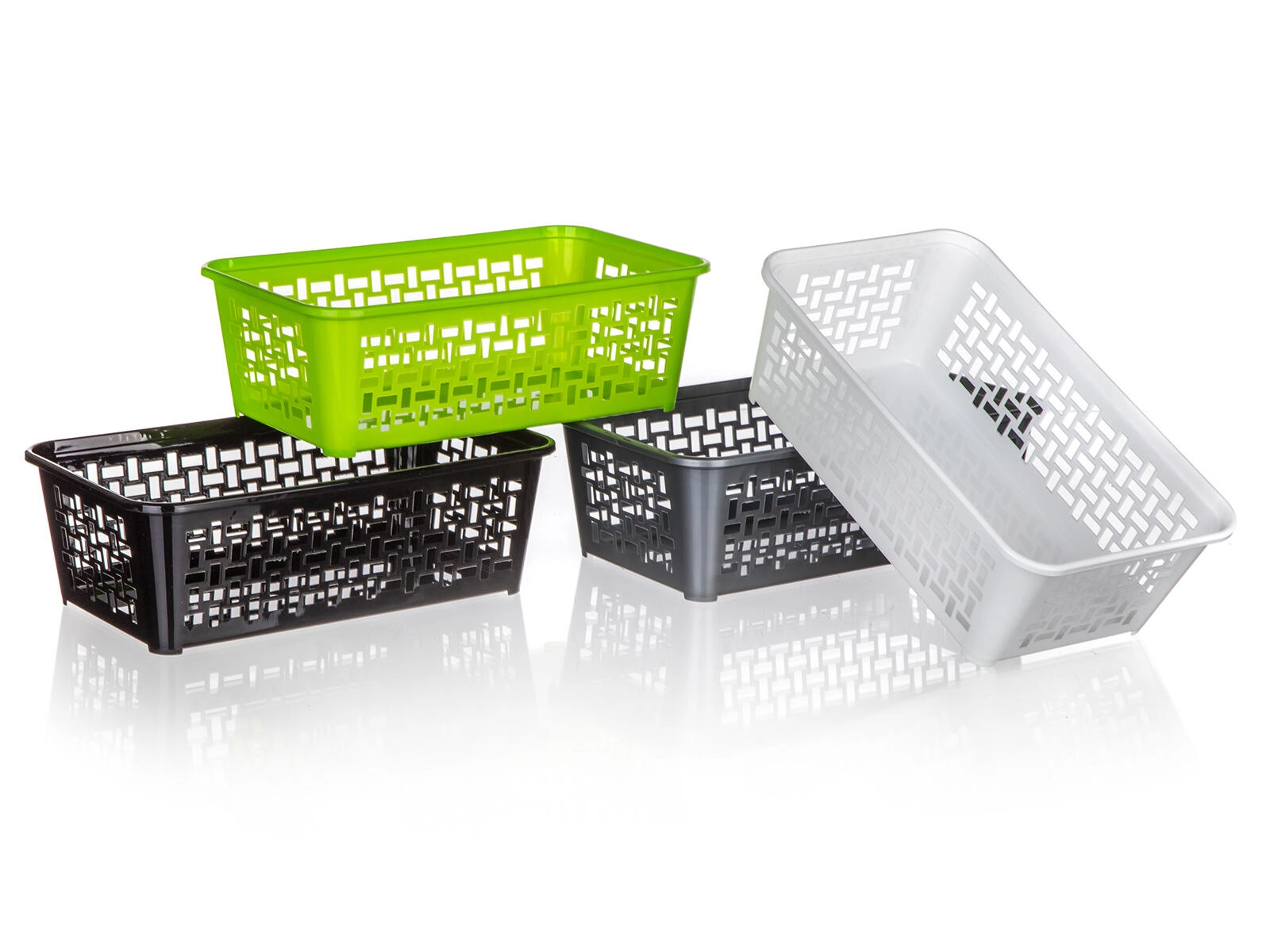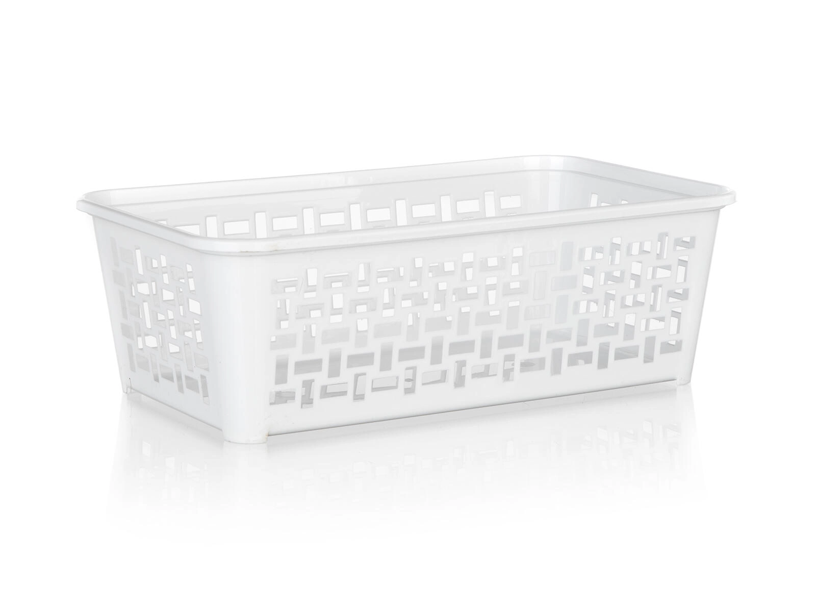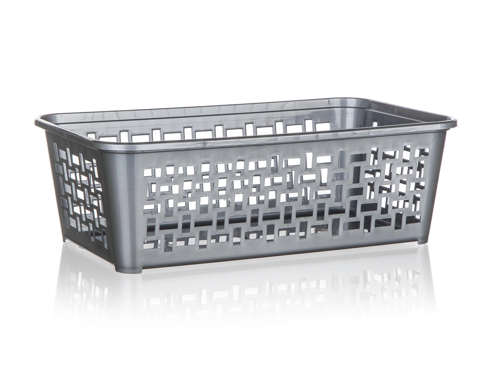 Ordnen Sie Kleinteile clever und stilvoll. Dieser leichte, aber robuste Aufbewahrungskorb aus hochwertigem Kunststoff ist ideal für Kosmetik, Reinigungsmittel, Gewürze, Gefrierbeutel, Bürobedarf und Kindersachen. Perforierte Wände sorgen für Belüftung und schnelle Orientierung im Inhalt.