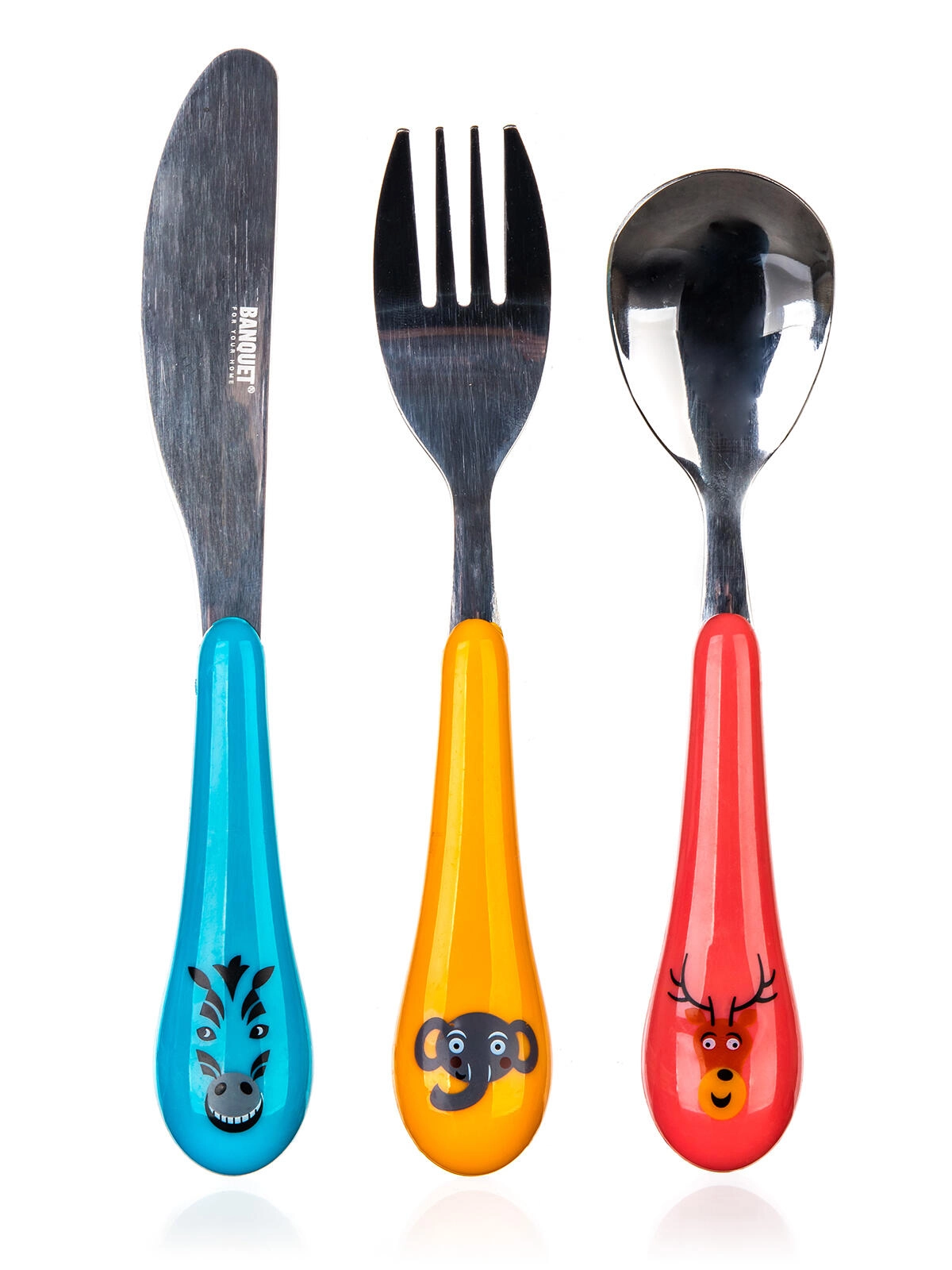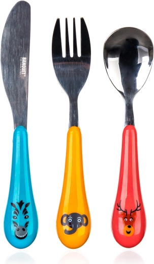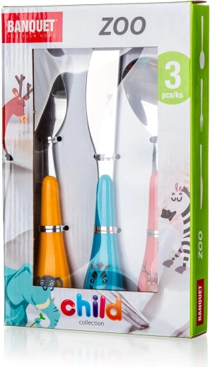 Dieses 3-teilige Set enthält alles, was Kinder für bequemes Essen brauchen: Löffel, Gabel und Messer. Dank der verspielten Motive aus dem ZOO wird jede Mahlzeit zum Spaß, und Kinder gewöhnen sich schneller an richtige Essgewohnheiten.