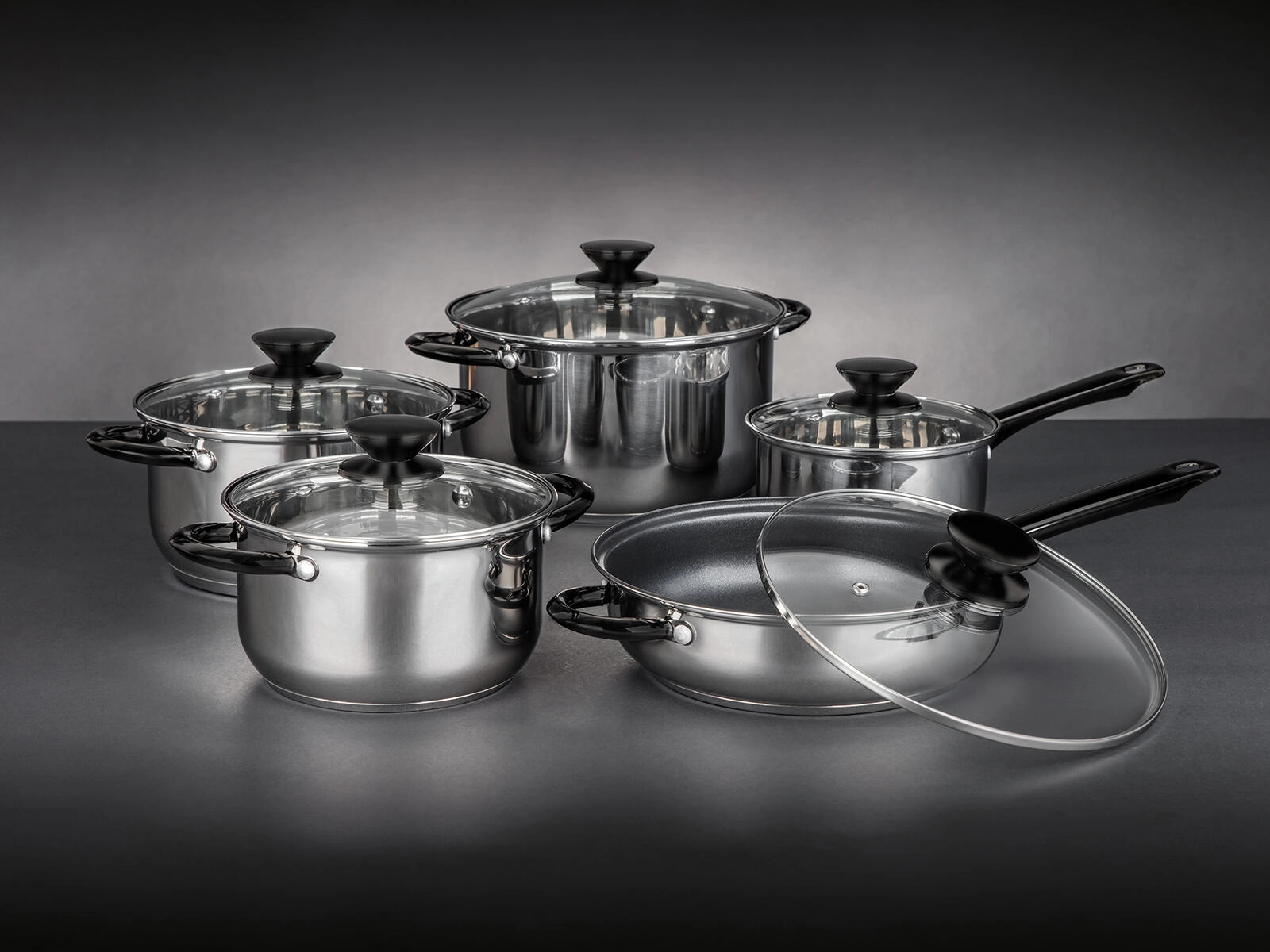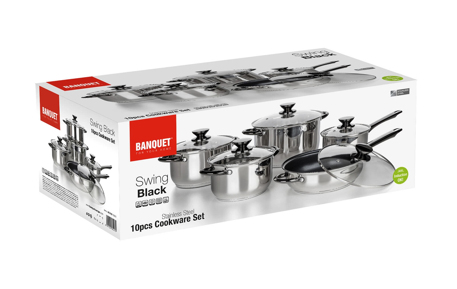 Das SWING Black Kochgeschirrset bietet eine ausgewogene Kombination aus Langlebigkeit, Funktionalität und modernem Design. Der Edelstahlkorpus mit mehrschichtigem Sandwichboden gewährleistet eine gleichmäßige Wärmeverteilung und zuverlässige Leistung auf allen Kochfeldern, einschließlich Induktion. Glasdeckel mit Dampfauslass ermöglichen eine präzise Kochkontrolle.