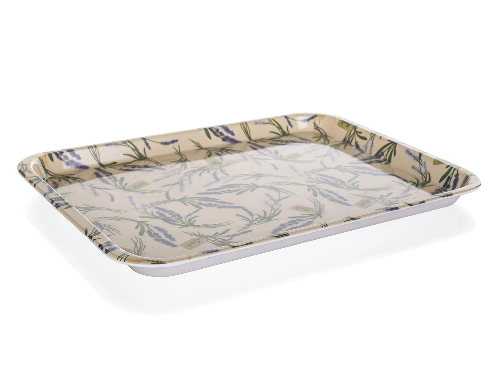 Praktisches Tablett mit elegantem LAVENDER-Motiv, ideal für den täglichen Einsatz und das bequeme Tragen mehrerer Tassen, Gläser oder Teller zugleich. Dank Melamin ist es außergewöhnlich leicht, zugleich stabil und widerstandsfähig.