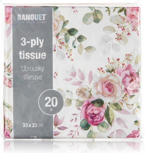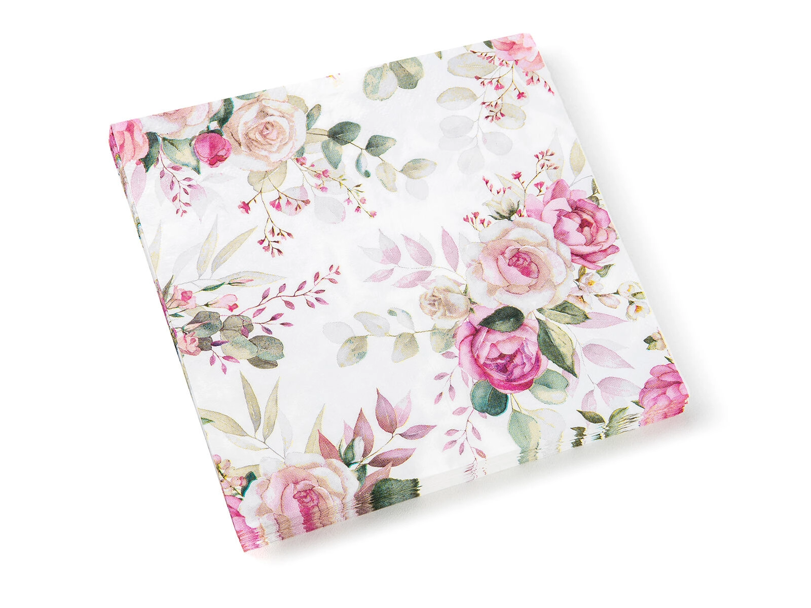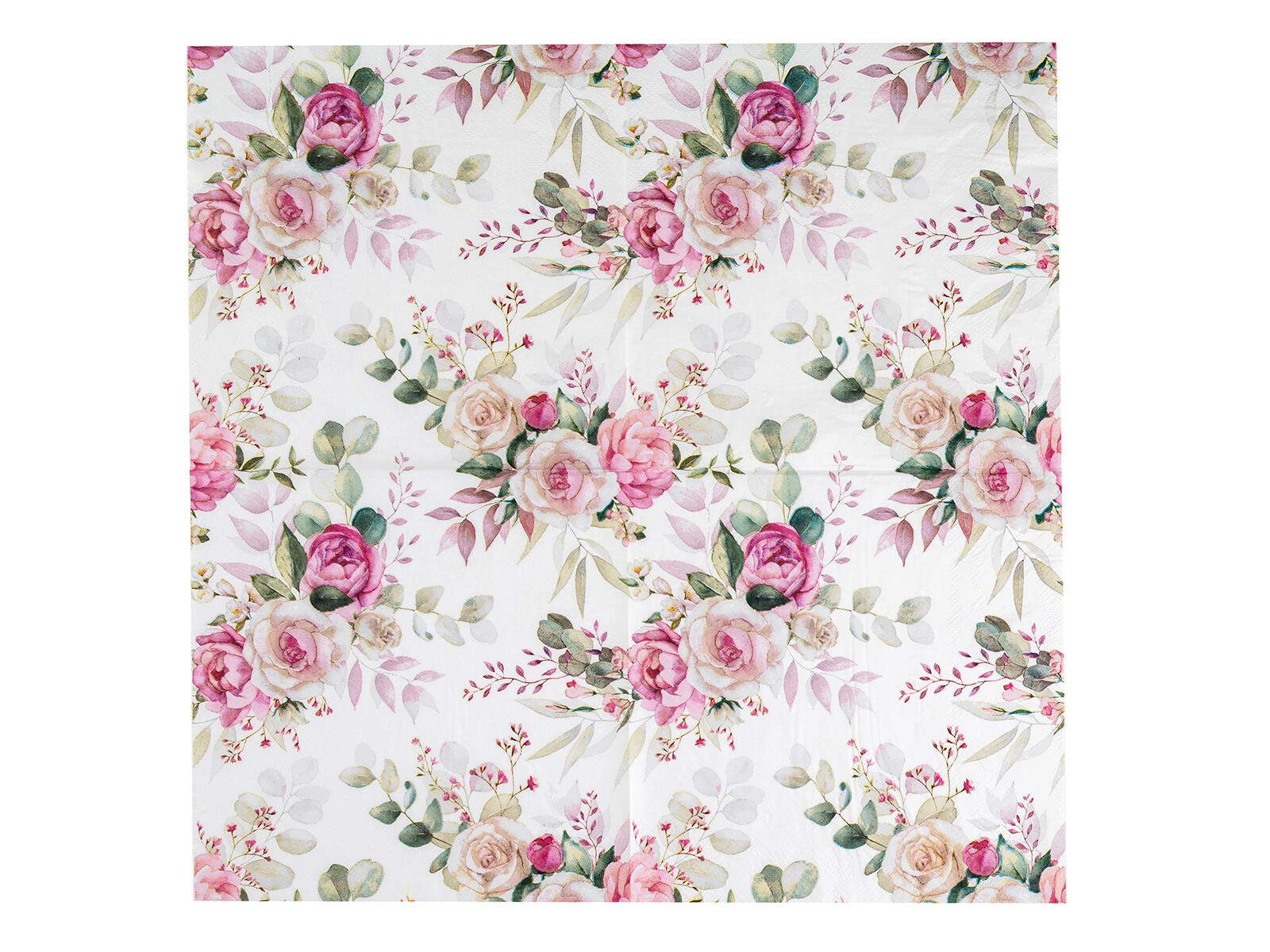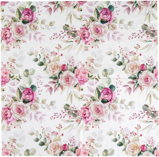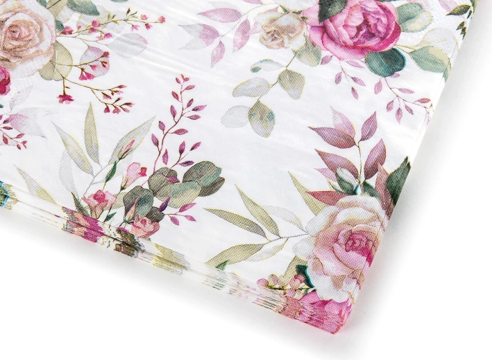 Servietten im Design Pink Rose passen zum romantischen, ländlichen wie auch zum Hochzeitsstil. Dank des universellen Formats von 33 × 33 cm sind sie praktisch zum Servieren von Vorspeisen, Desserts und Hauptgerichten.