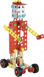 Der Holzbaukasten Vilac Super Batibloc ist die ideale Wahl für kleine Konstrukteure. Mehr als 100 bunte Teile, Schrauben und Verbinder ermöglichen den Bau unterschiedlichster Modelle – von Fahrzeugen bis hin zu einfachen Figuren. Die beiliegende Anleitung mit 6 Projekten hilft bei den ersten Versuchen und unterstützt anschließend die eigene kreative Gestaltung.