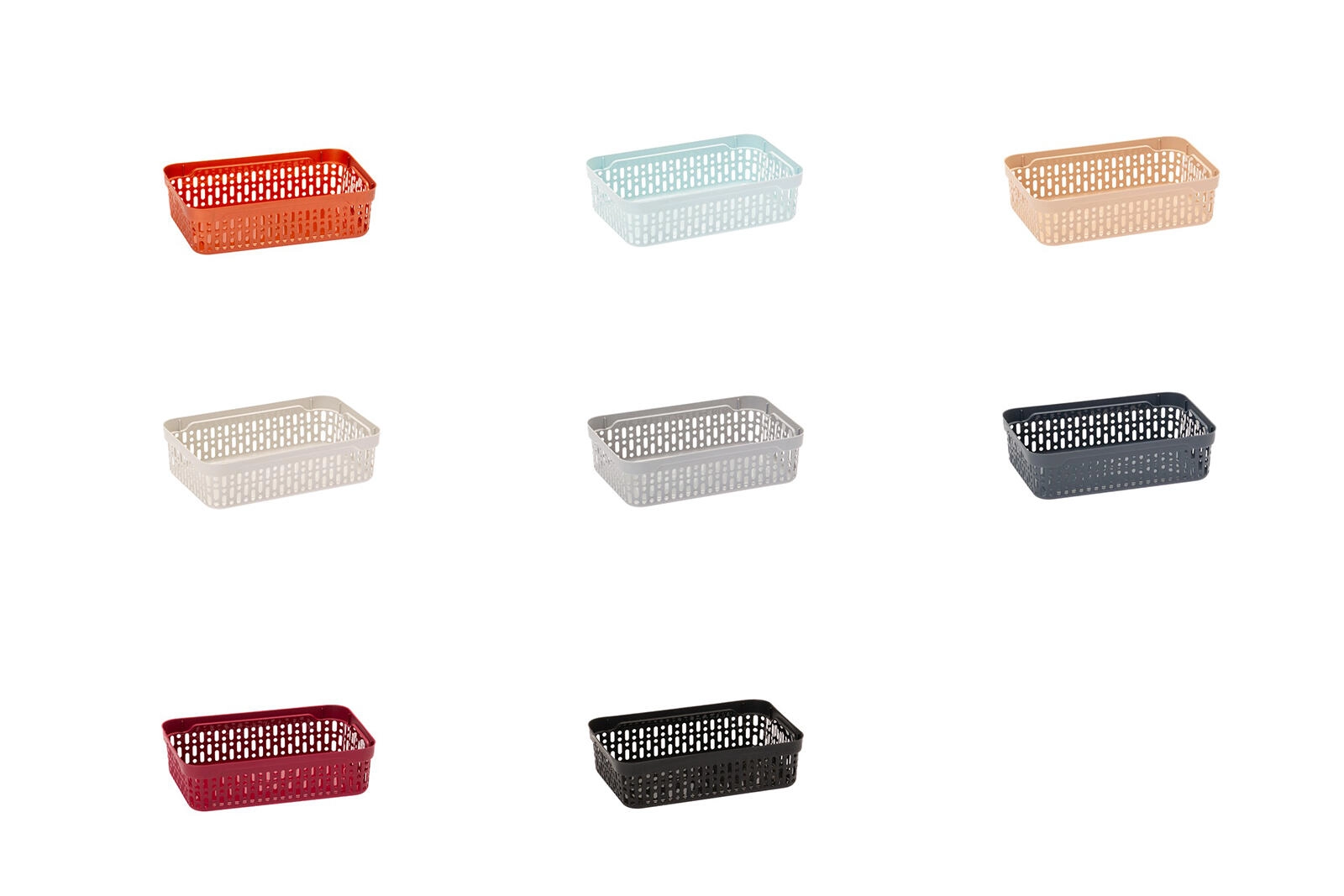 Geeignet zur Aufbewahrung von Kosmetik, Toilettenartikeln, Bürobedarf, Kabeln, Gewürzen oder Kleinteilen. Erhältlich im Mix moderner Farben, sodass sich Haushalt und Büro leicht aufeinander abstimmen lassen.