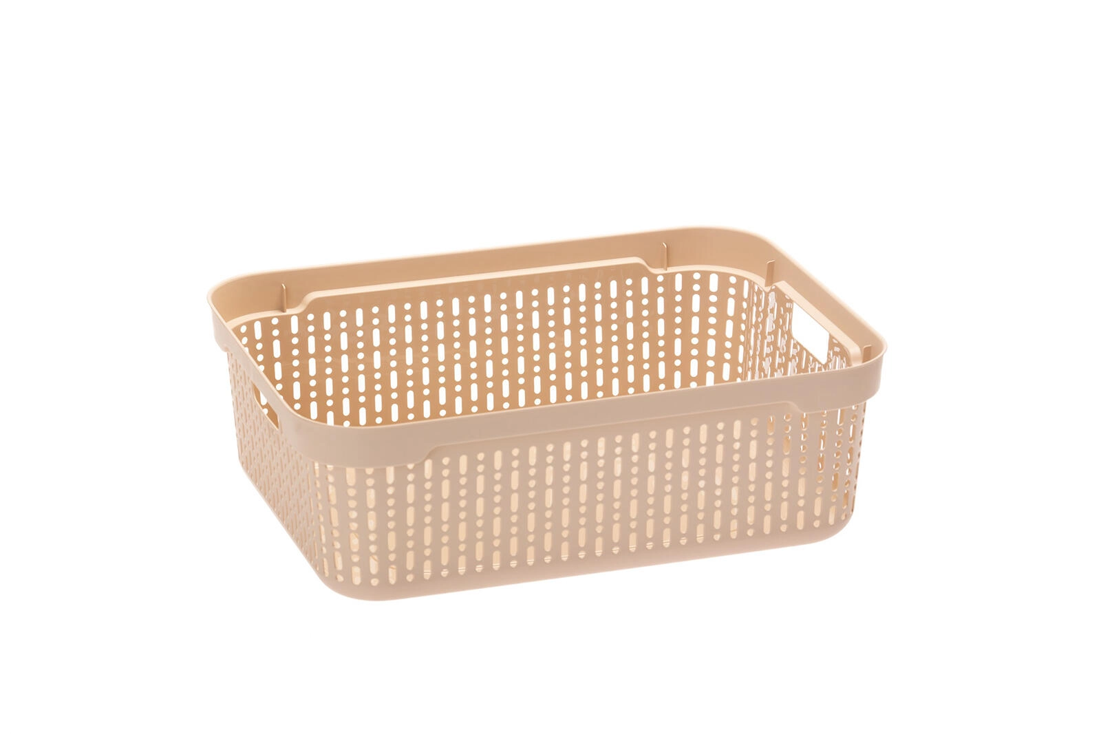 Ordnung stilvoll halten. Der Morsetta-Korb aus robustem Kunststoff bietet vielseitige Einsatzmöglichkeiten – von der Organisation von Lebensmitteln in der Speisekammer über Spielzeug im Kinderzimmer bis hin zu Kosmetik oder Bürobedarf. Dank der perforierten Wände ist der Inhalt stets sichtbar und gut belüftet.