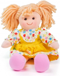 Die Puppe Daisy bringt Freude und Komfort in die Spielwelt Ihrer Kinder. Hergestellt mit Augenmerk auf Qualität und Sicherheit, mit gelbem Kleid und buntem Muster.