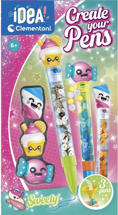 Verwandeln Sie Schreiben in Spaß und gestalten Sie drei einzigartige Stifte mit Süßigkeiten-Motiven. Dank der transparenten Röhrchen mit Wasser und Dekorationen entsteht ein fesselnder Shake-Effekt – Glitzer und Formen im Inneren bewegen sich beim Schütteln wunderschön. Jeder Stift kann mit farbiger Tinte abgestimmt und mit einer niedlichen Gummifigur verziert werden.