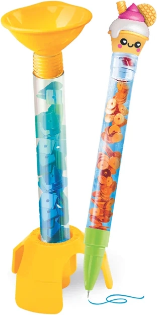 Die transparenten Stiftkörper werden mit Wasser und Dekorationen befüllt – nach dem Schütteln bewegen sich Glitzer, Formen und Mini-Konfetti und erzeugen einen einzigartigen visuellen Effekt.