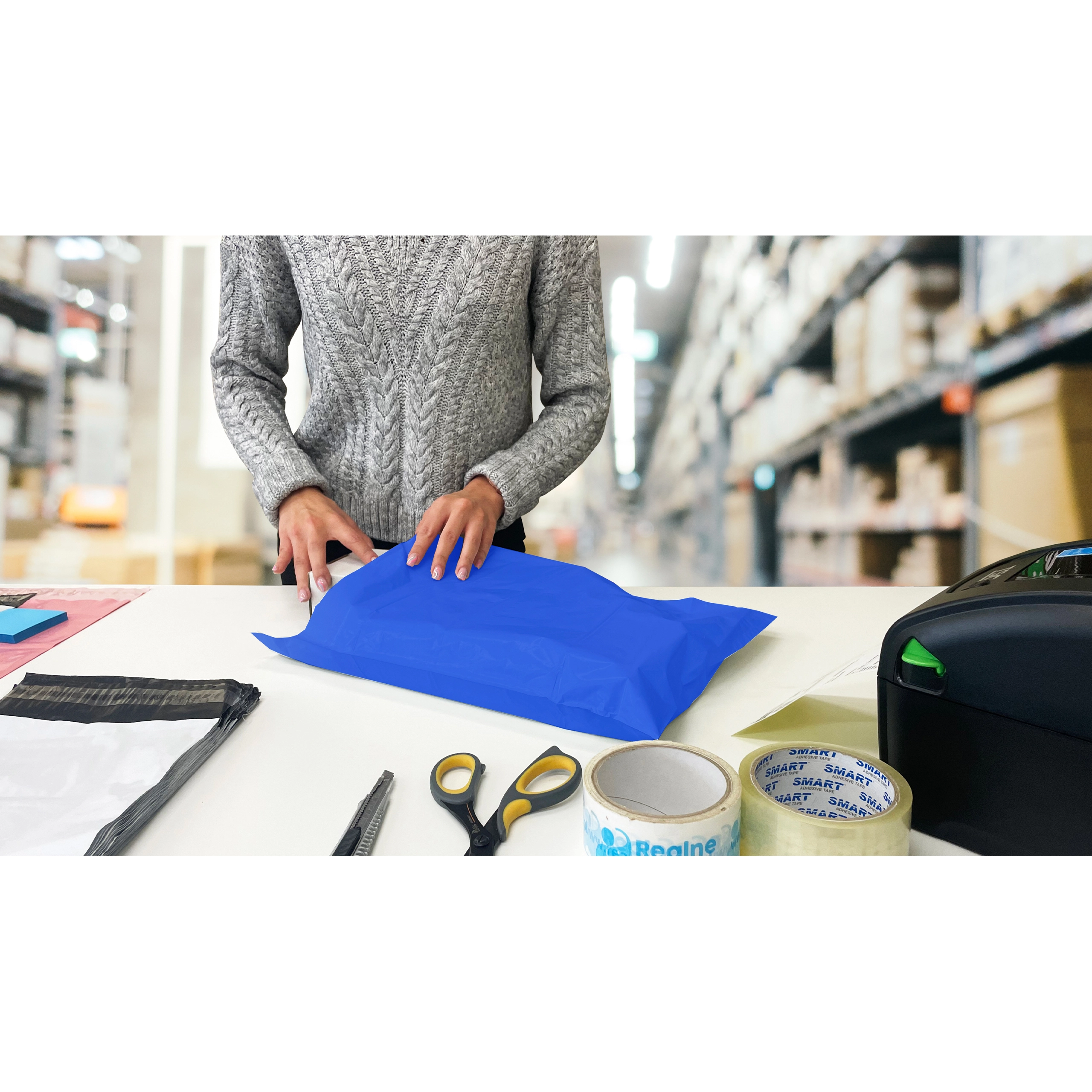 Starker Kunststoff widersteht Einreißen und Feuchtigkeit, während der Tamper‑Evident‑Verschluss jeden Öffnungsversuch offenlegt. Die Ware erreicht den Empfänger sicher.
