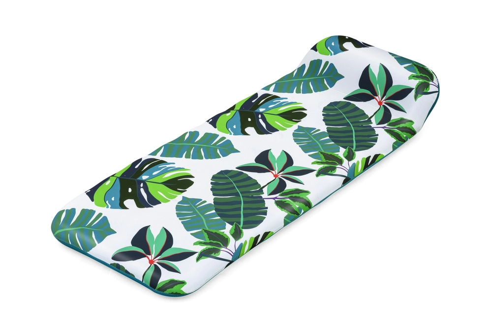 Dank der ausgewogenen Konstruktion liegt die Matratze stabil auf der Wasseroberfläche und bietet eine komfortable Fläche zum Sonnen und Ausruhen. Das elegante Design mit Blättern tropischer Pflanzen verleiht Ihrer Sommerausstattung einen frischen Look.