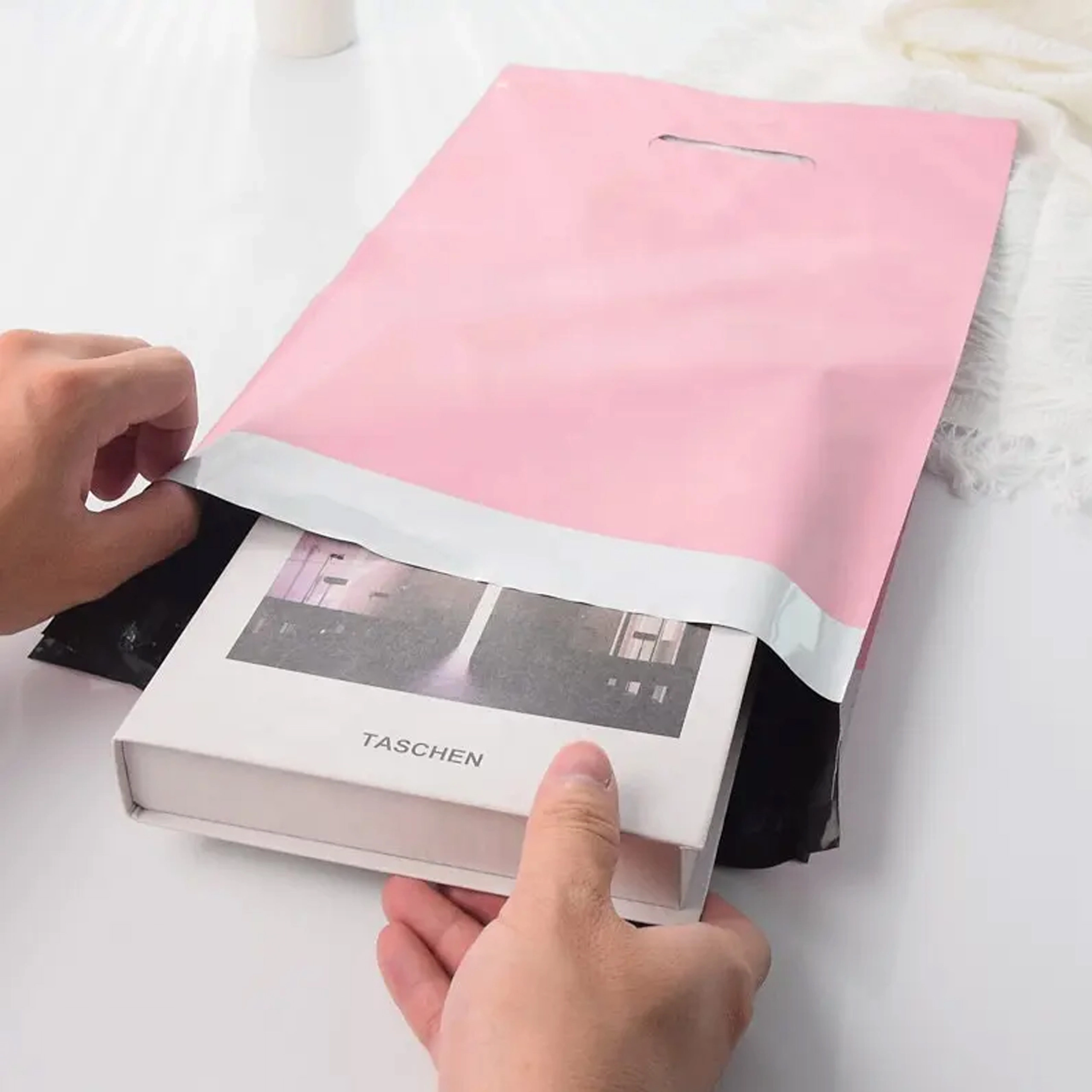 Die Beutel bestehen aus hochwertiger LDPE-Folie, die reißfest sowie widerstandsfähig gegen Feuchtigkeit, Staub und Schmutz ist. Dank des Griffs lassen sich Sendungen bequem tragen – praktisch für Kuriere und Endkunden. Das rosa Design hilft, die Markenwahrnehmung zu steigern und eignet sich zudem für Druck und Personalisierung.
