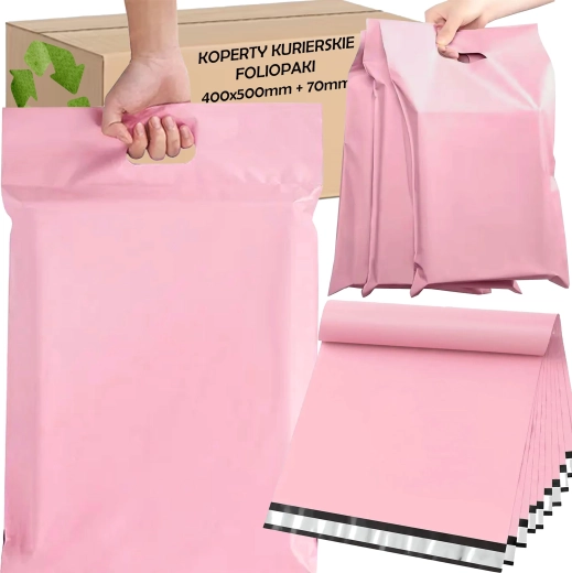 Praktische und stabile Versandtaschen aus LDPE in elegantem Rosa schützen den Inhalt vor Feuchtigkeit, Staub und Schmutz. Dank des ausgestanzten Grifflochs lassen sie sich bequem tragen und sind ideal für Kurierversand und persönliche Übergabe. Das Format 400 × 500 mm + 70 mm Griffloch eignet sich zum Verpacken kleinerer bis voluminöserer Produkte.