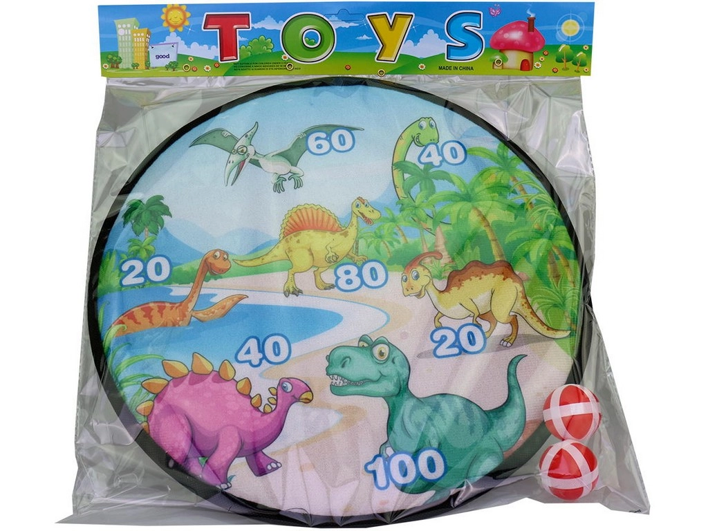 Die Dartscheibe mit fröhlichem Dinosauriermotiv ist das ideale Spiel für Kinder, die Werfen und Wettkampf lieben. Dank des Klettverschlusses haften die Bälle zuverlässig auf der Fläche, sodass das Spiel sicher ist, ohne das Umfeld zu beschädigen. Das kompakte Maß von 36 × 36 cm ermöglicht ein einfaches Aufhängen und Verstauen.