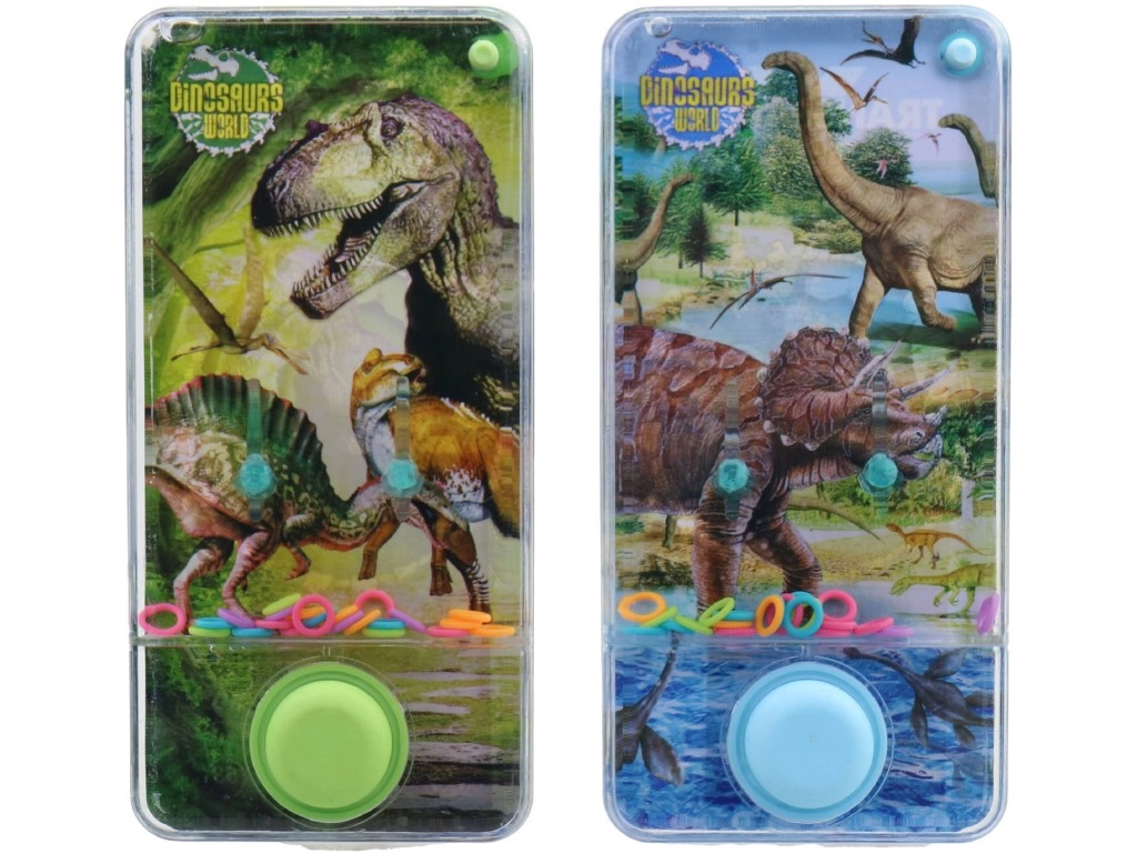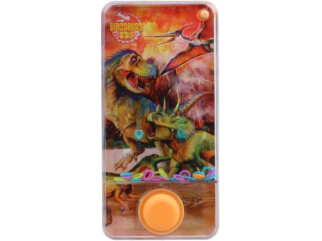 Entdecken Sie einfachen und fesselnden Spielspaß mit dem Wasserhandspiel, inspiriert von der Welt des Jurassic Park. Drücken Sie einfach die Tasten, setzen Sie die Ringe im Wasser in Bewegung und platzieren Sie sie auf den Stiften. Dank der kompakten Maße nehmen Sie das Spiel leicht in den Kindergarten, auf den Spielplatz oder auf Ausflüge mit.