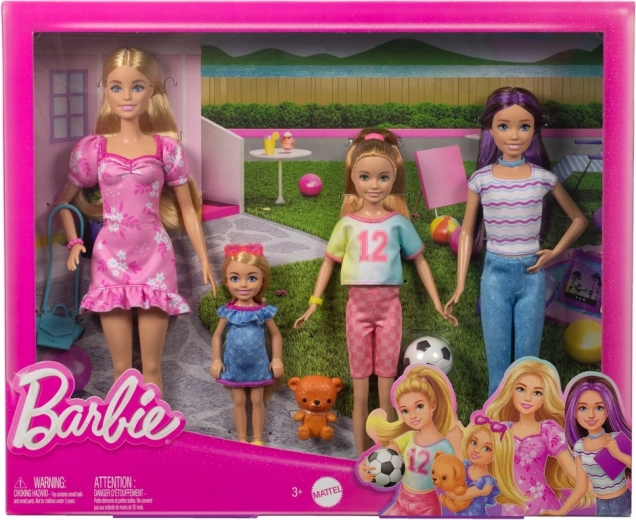 Dieses farbenfrohe Familienset bringt vier unterschiedliche Charaktere mit ihrem eigenen Look und Interessen: die elegante Barbie im rosa Kleid, die technikbegeisterte Skipper mit Tablet, die sportliche Stacie mit Fußball und die niedliche Chelsea mit Plüsch-Teddybär. Jede Puppe hat abnehmbare Kleidung und Details, die realistisches Spielen unterstützen.
