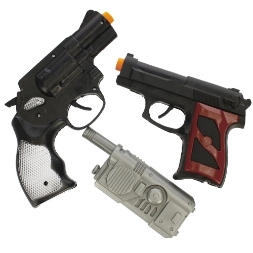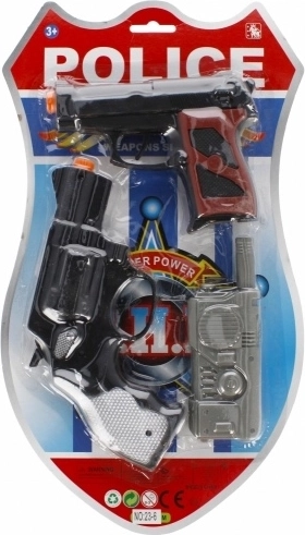 Dieses dreiteilige Polizeiset vermittelt Kindern ein authentisches Rollenspielerlebnis als Gesetzeshüter. Revolver, Automatikpistole und Funkgerät erweitern die Spielmöglichkeiten, fördern die Vorstellungskraft und lehren Kinder faires Kräftemessen sowie Teamarbeit. Dank robuster Konstruktion und sicherer Ausführung eignet sich das Set für das Spielen zu Hause und für Abenteuer im Freien.