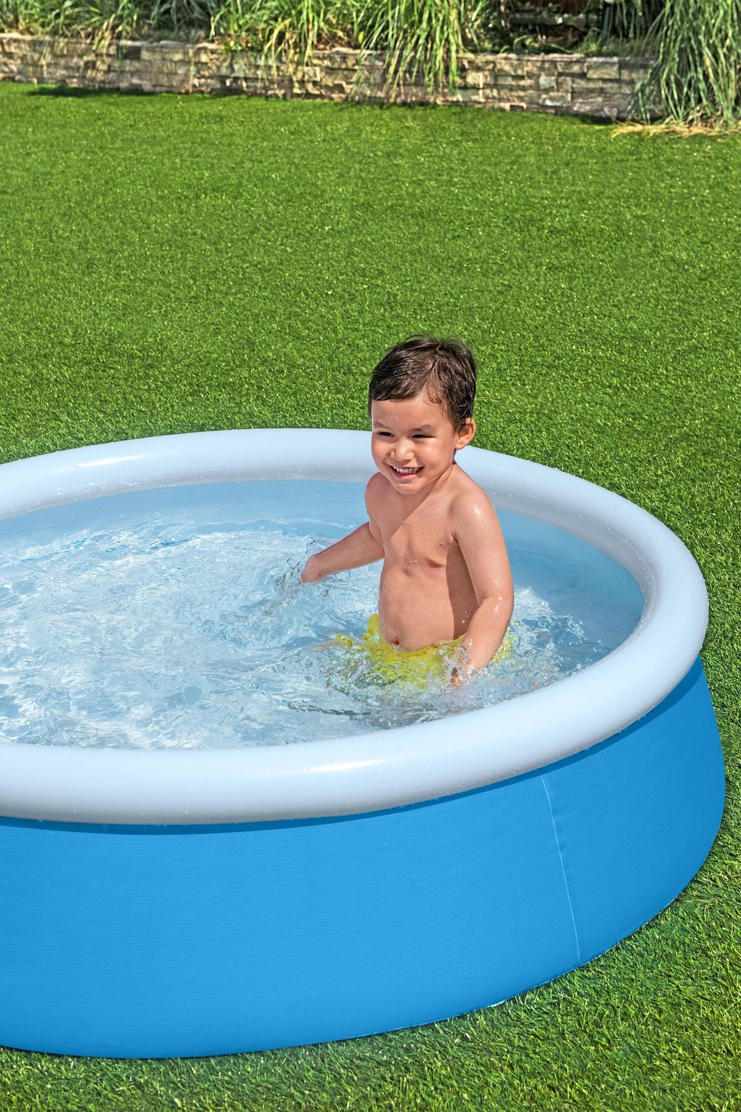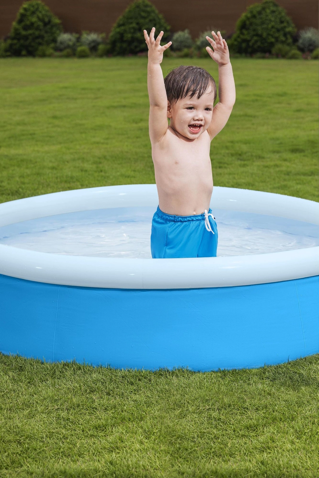 Die Aufstellkonstruktion mit aufblasbarem oberem Ring sorgt dafür, dass der Pool in wenigen Minuten einsatzbereit ist – ganz ohne Werkzeug.