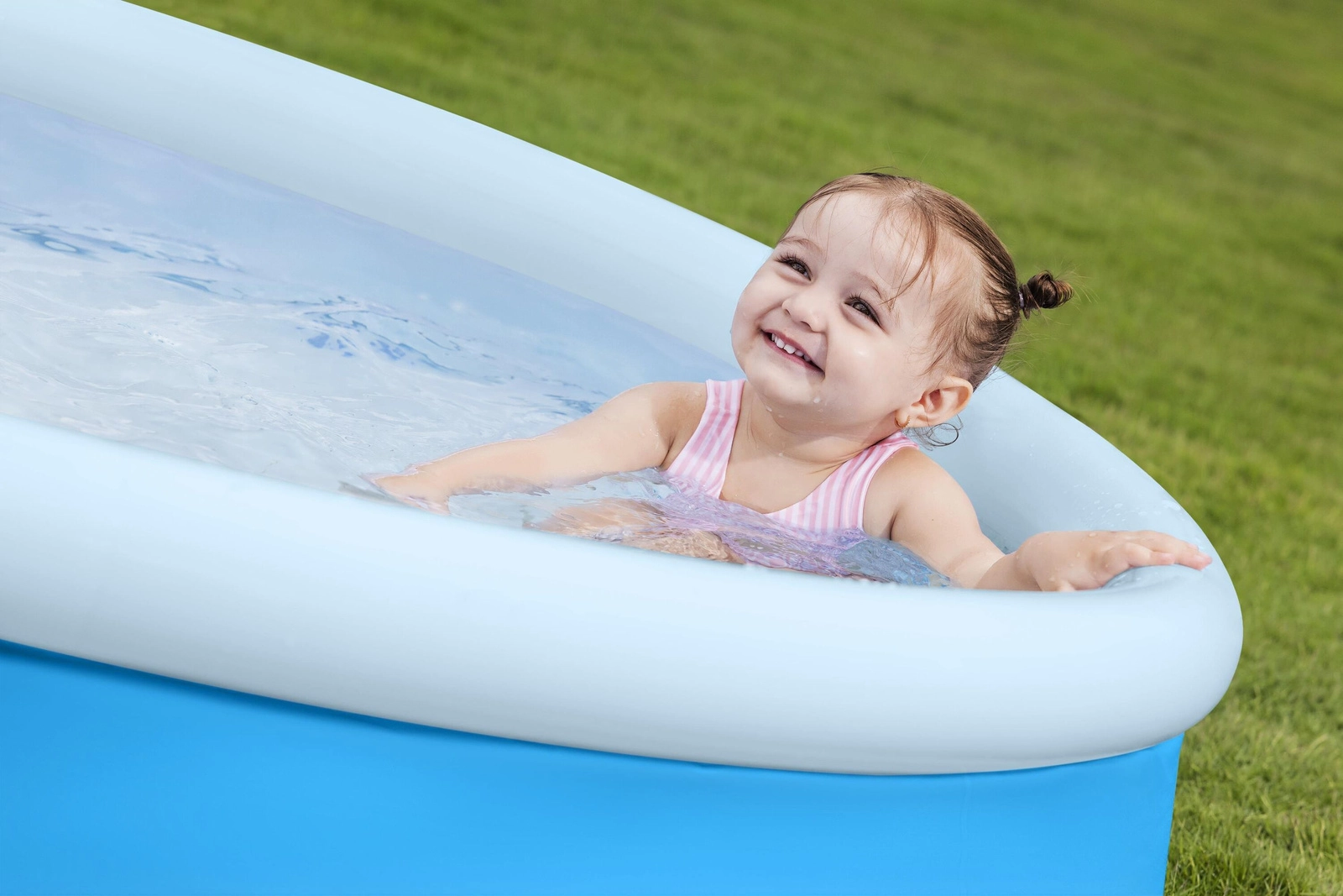Mehrschichtiges PVC hält dem alltäglichen Gebrauch stand. Nach der Saison lässt sich der Pool schnell entleeren, zusammenlegen und platzsparend verstauen.
