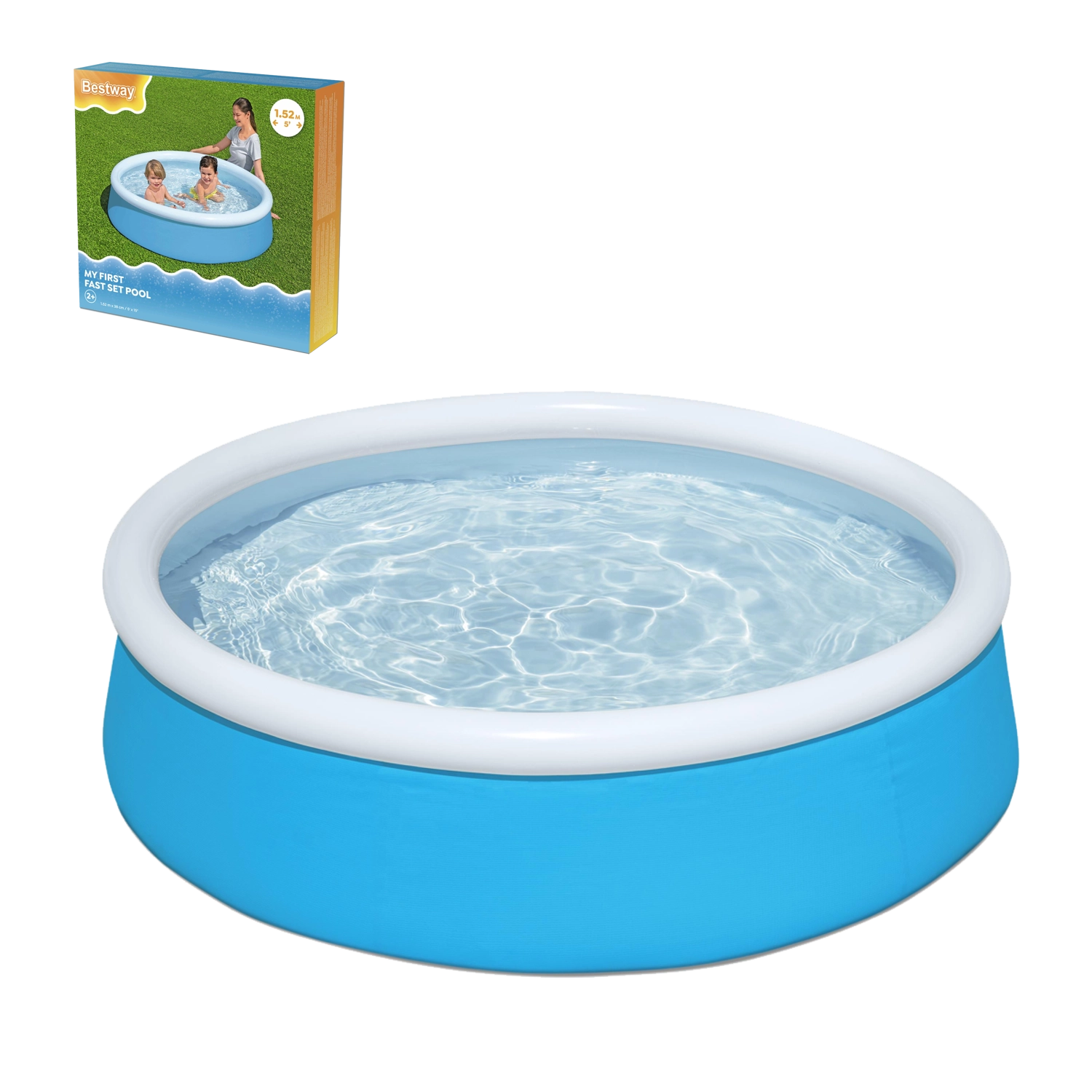 Dieser runde Gartenpool ist die ideale erste Wahl für kleine Kinder. Dank des aufblasbaren oberen Rings heben sich die Wände beim Befüllen selbst an, und der Pool ist in wenigen Minuten bereit. Die kompakten Abmessungen sorgen für sicheres Planschen und eine einfache Platzierung auch in kleineren Gärten.
