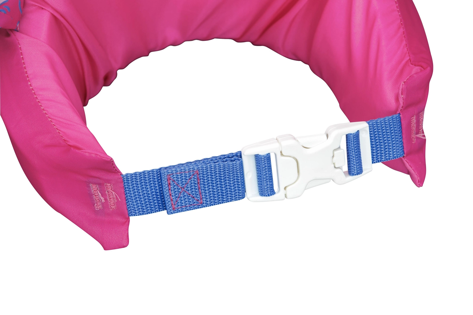 Die durchdachte Konstruktion verbindet Brustpaneel und Flügel an den Armen, sodass die Hilfe an Ort und Stelle bleibt und die Stabilität des Kindes fördert. Der verstellbare Gurt mit Schnellverschlussschnalle ermöglicht ein einfaches und sicheres Anpassen an den Brustumfang.