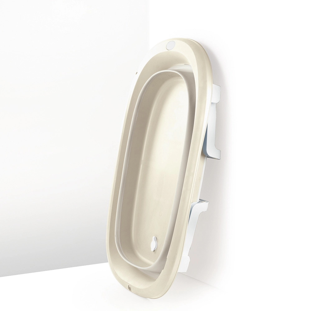 Der integrierte, verriegelbare Stopfen ermöglicht das schnelle und sichere Ablassen des Wassers, ohne die Wanne anheben zu müssen. Abgerundete Kanten und eine angenehm tiefe Form bieten dem Baby maximalen Komfort beim Baden. Das neutrale Beige‑Weiße Design passt hervorragend in jedes Badezimmer.