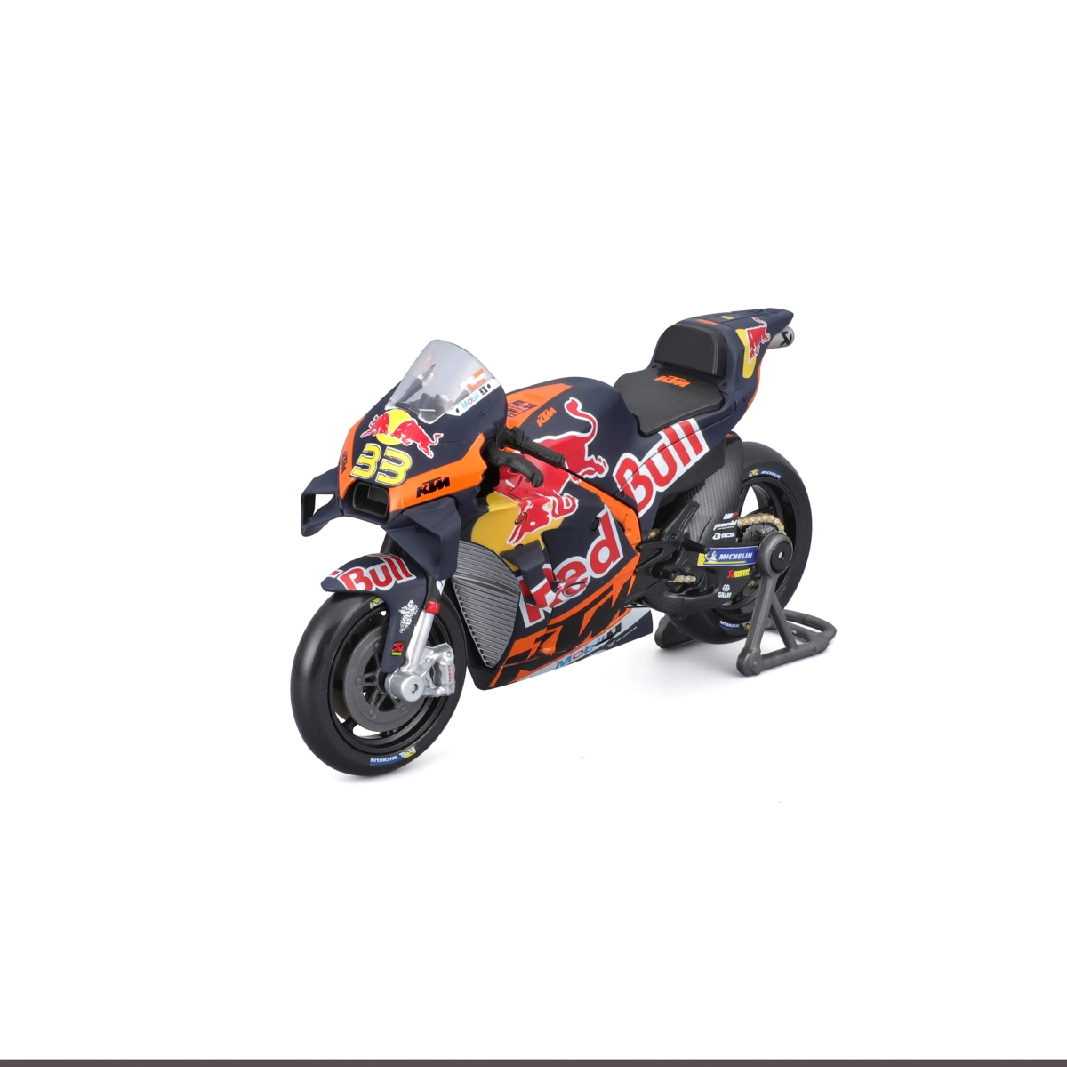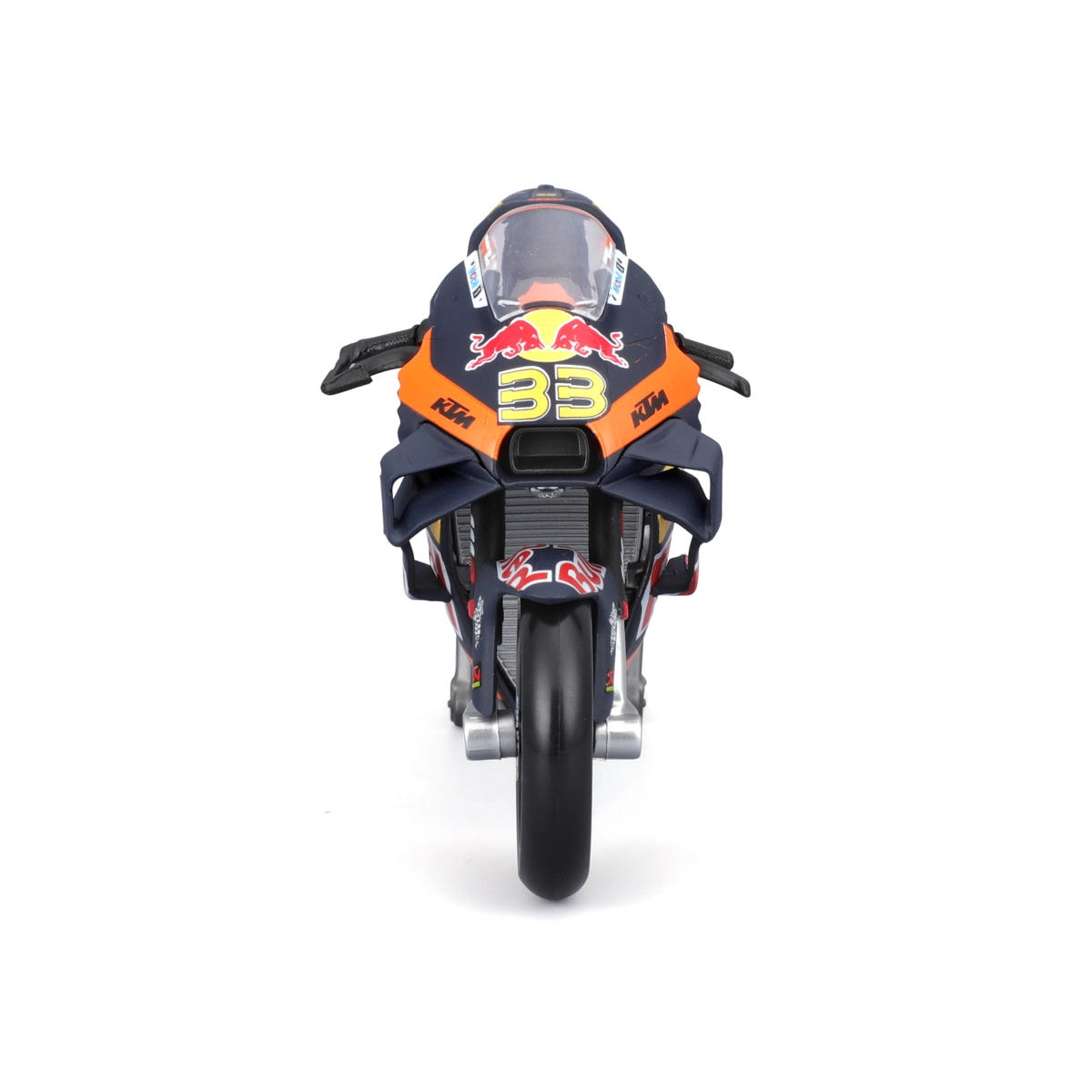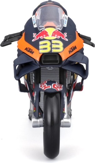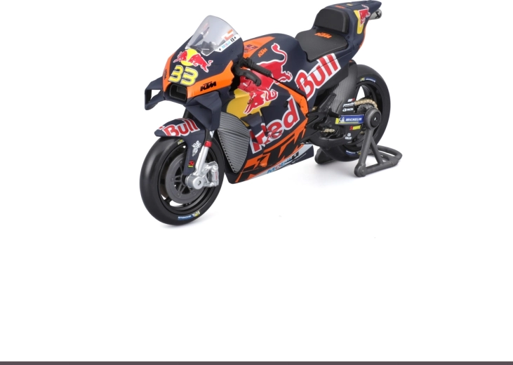 Offiziell lizenzierte Teamfarben von RED BULL KTM und detailreiche Aufkleber mit der Nummer 33 des Fahrers Brad Binder für maximale Realitätsnähe in der Vitrine oder auf dem Schreibtisch.
